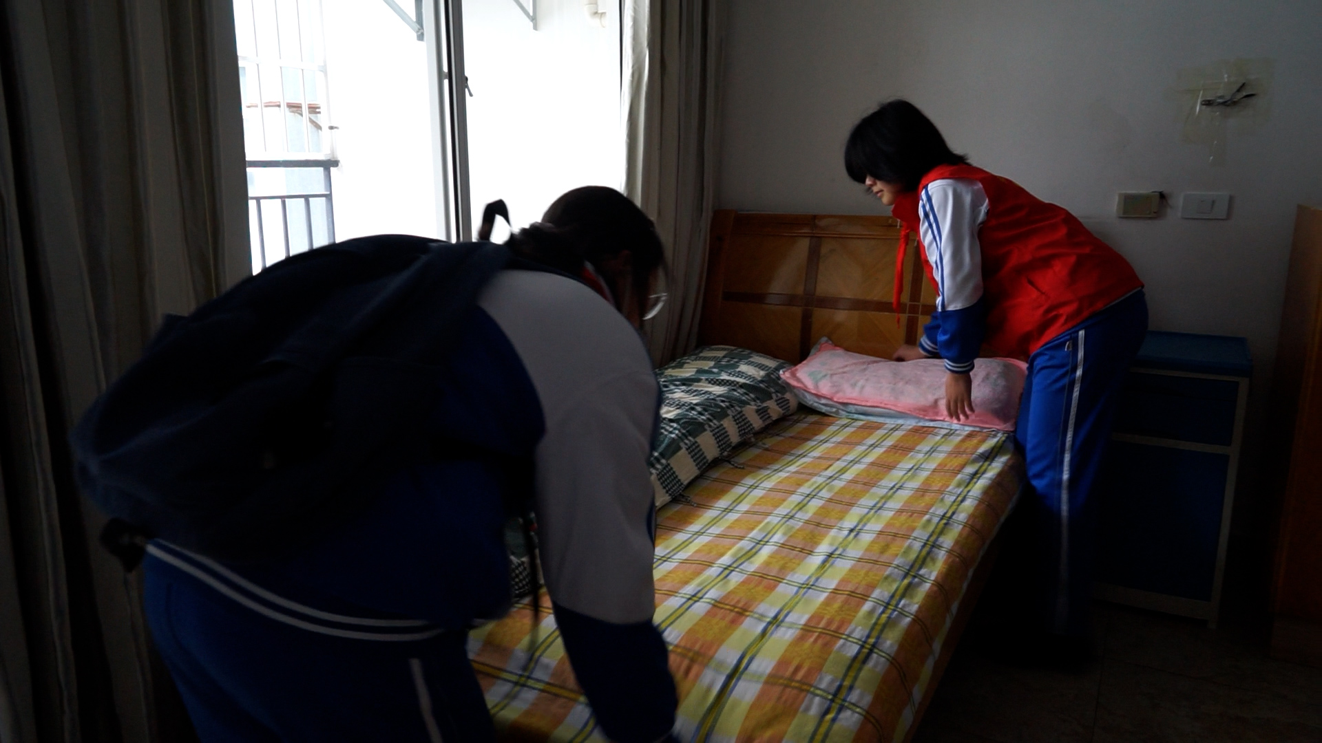 活动中,学生们有的为老人整理房间;有的陪老人拉家常。温暖的话语、关切的嘱咐,让整个福利院沉浸在温馨的气氛之中。