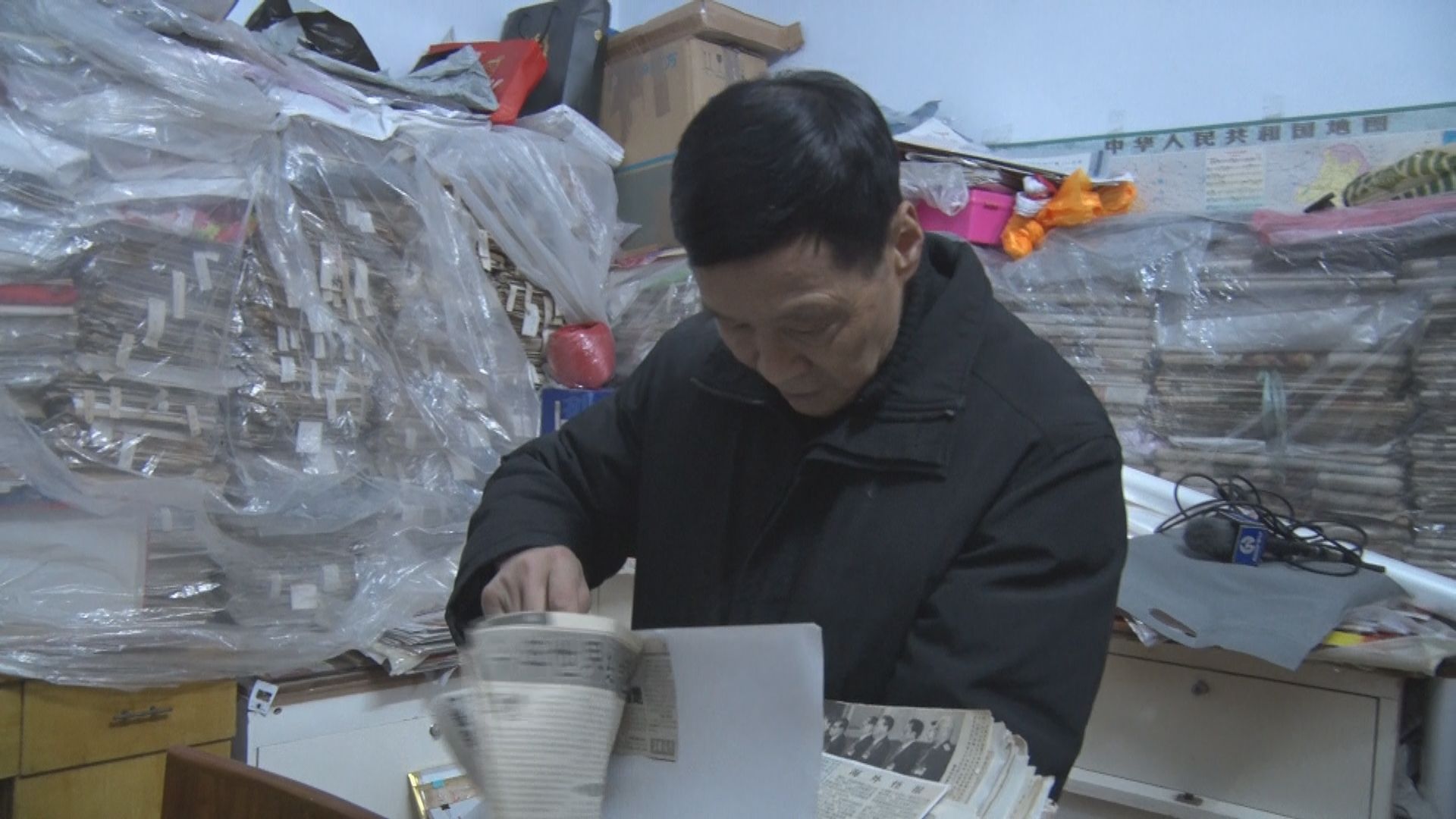 【同期声】:宋晏儒 “看报是一种享受,集报是一种信仰,我之所以要集报,因为报纸是我的良师益友,没有报纸就没有我的今天,我从报纸当中吸收了营养,它陶冶了我的情操,教我做人,教我做事,教我为社会做贡献。”