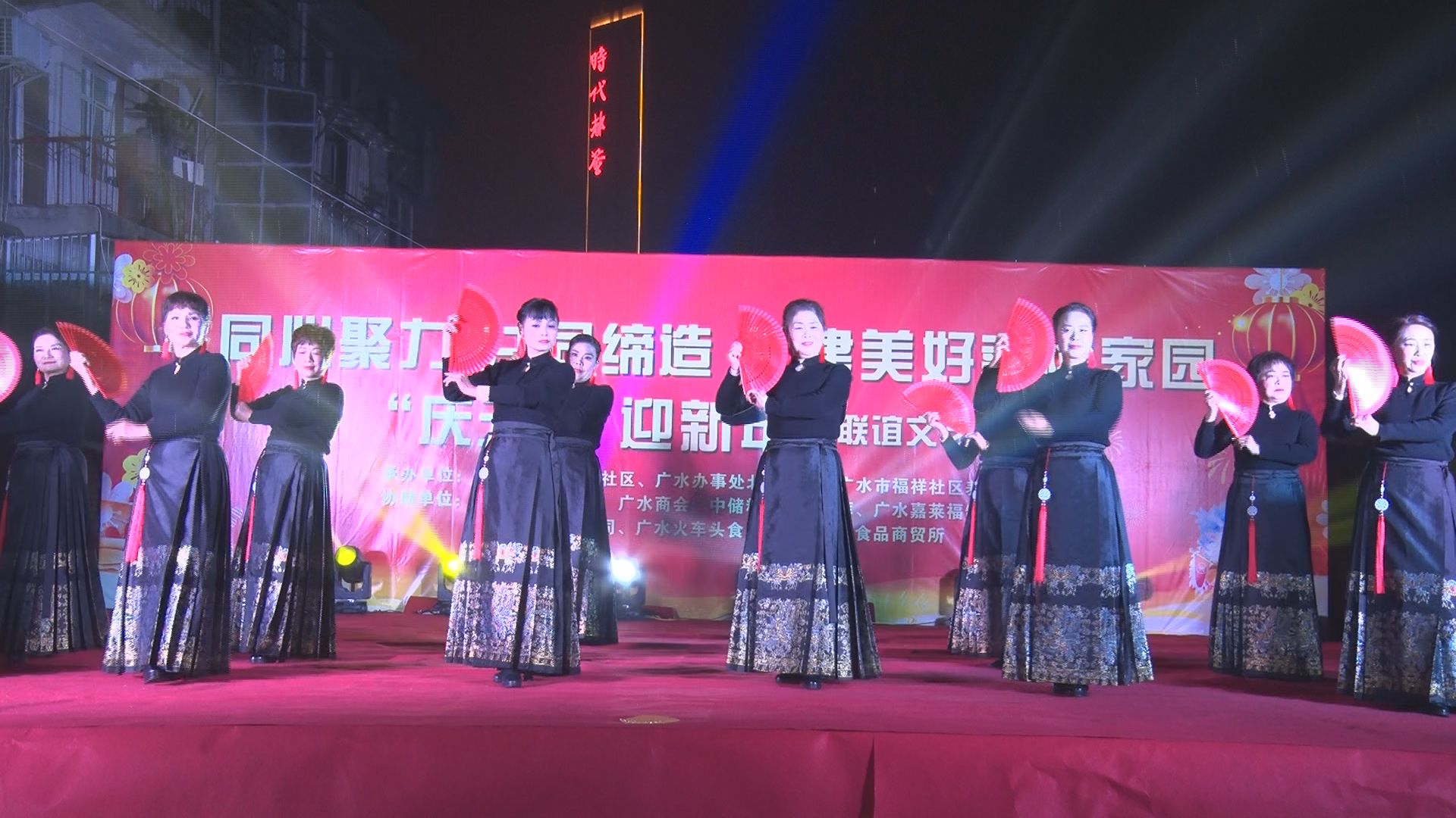 12月29日晚,广水街道工新社区联合北湖社区、福祥社区养老中心、广水商会等单位举办同心聚力、共同缔造、共建美好家园暨“庆元旦、迎新年”联谊文艺晚会,大家欢聚一堂共庆新年。