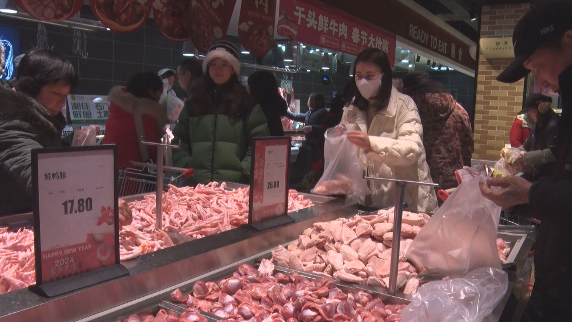 超市负责人告诉记者,考虑到今年"就地过年"的市民较多,超市的新鲜水果、时令蔬菜、鸡蛋、禽肉和水产品等加大了备货量,价格稳定。为了确保正常供应,春节期间超市正常营业,方便市民采购。
