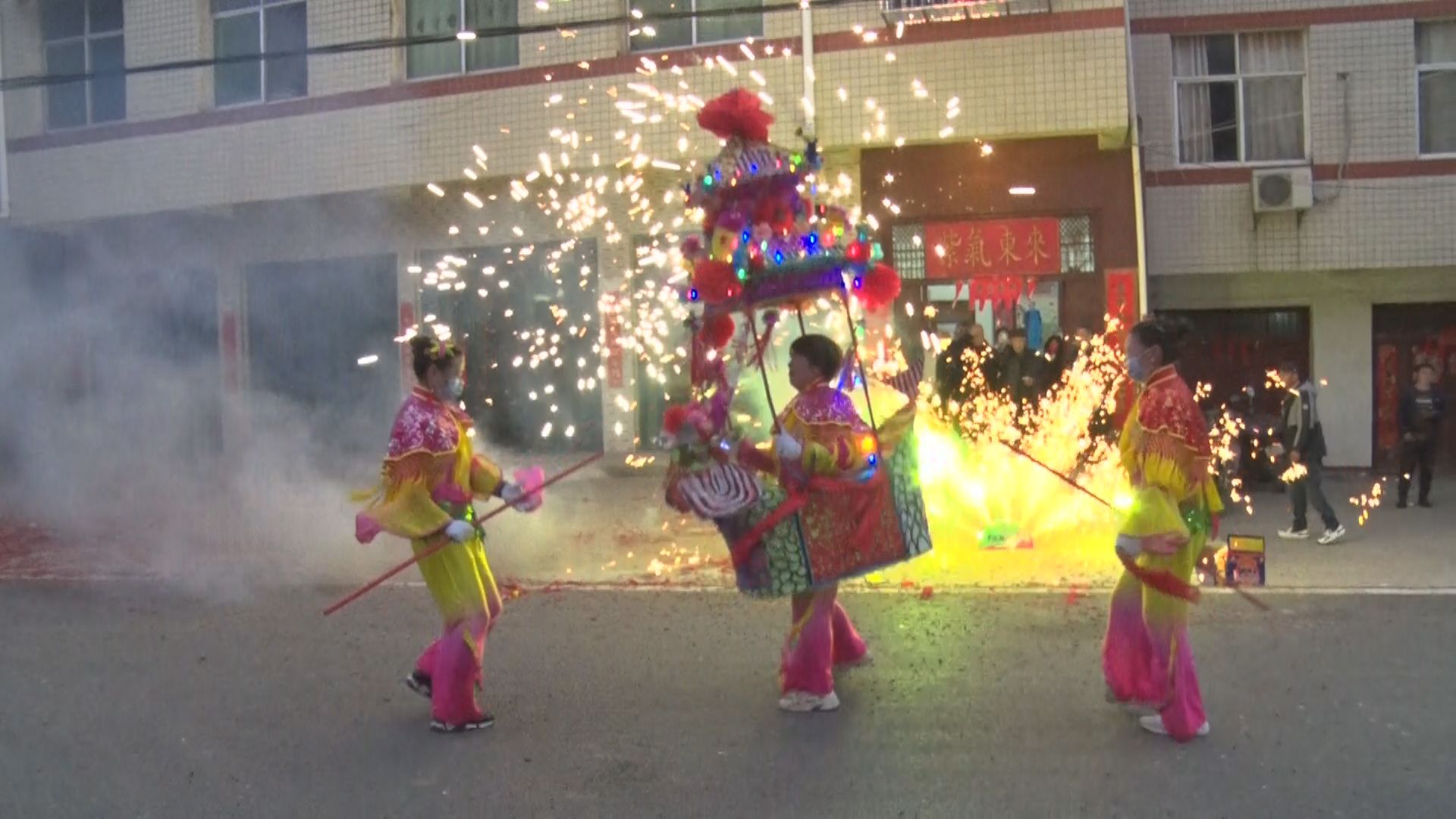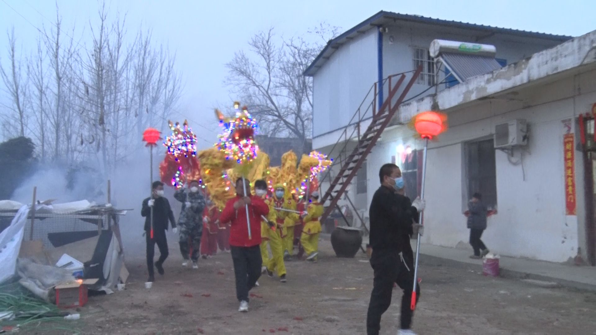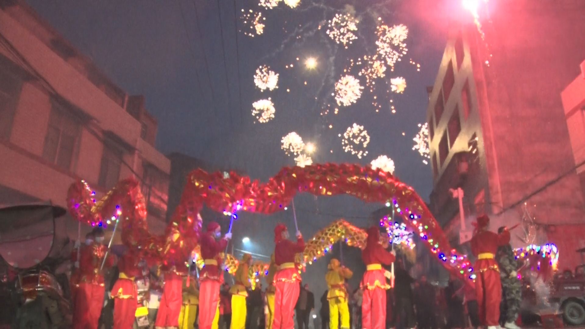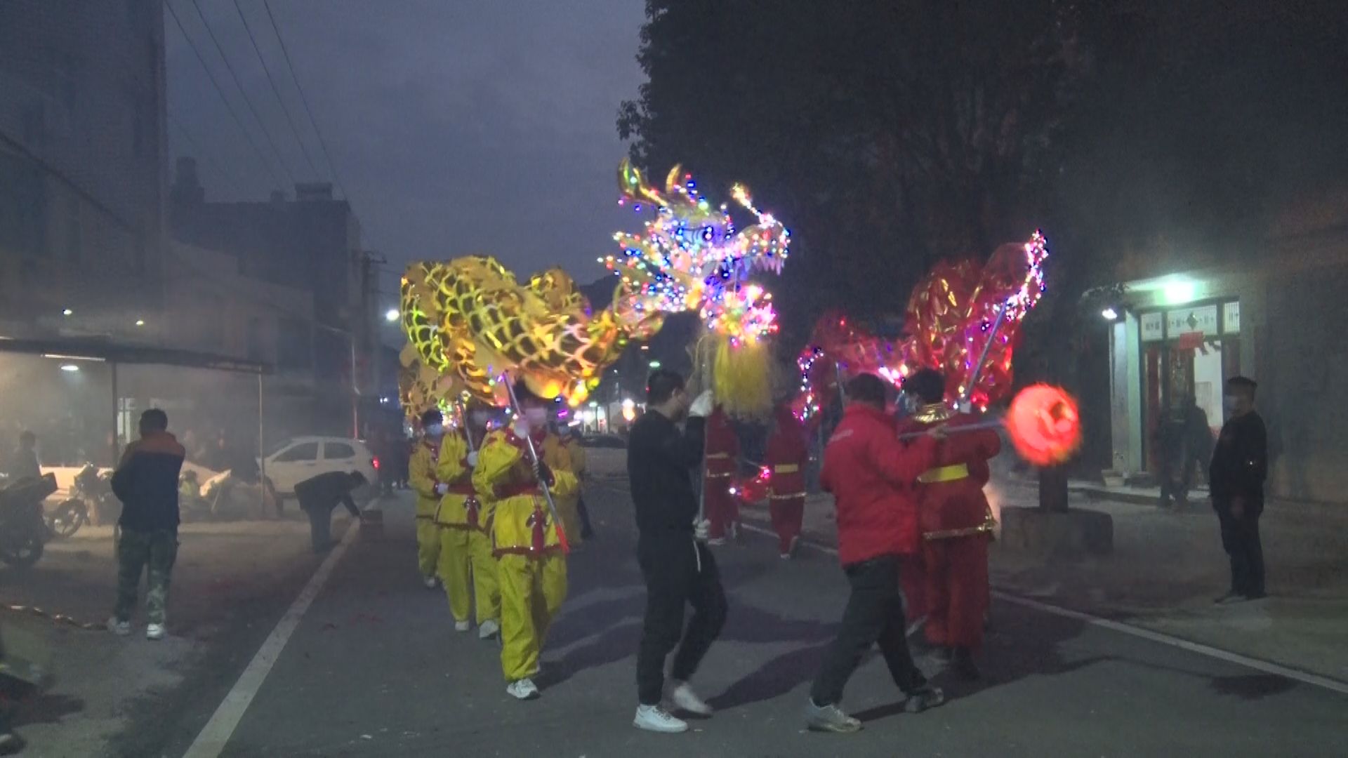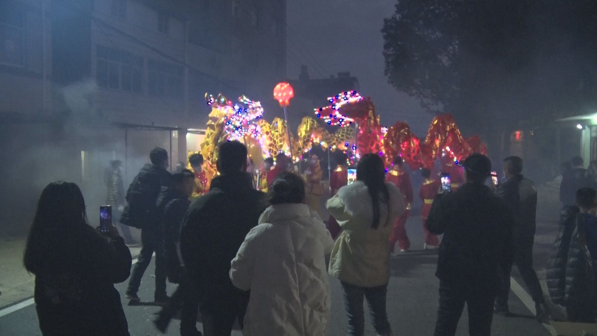 大红灯笼高高挂,乡村新春年味浓。火树银花中,龙姿矫健,船舞翩跹。舞龙队员和广大群众一道,欢呼着、奔跑着,在传承和弘扬中华传统优秀文化中热烈喜庆欢庆新年,感恩党的富民政策,展现对龙年的美好愿景和昂扬向上的奋斗激情,期盼新年新气象、日子更红火。