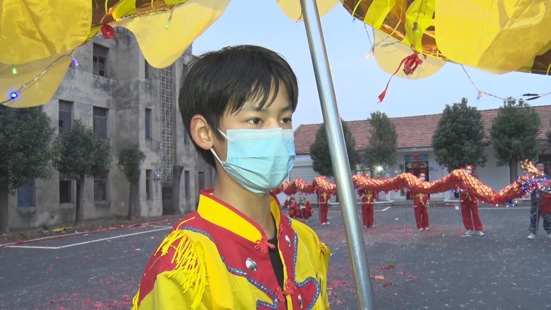 参加舞龙表演的熊皓雨今年只有15岁,在经验丰富的老一辈舞龙队员的引领下,他身着色彩鲜艳的表演服装,与队员们默契配合,举着8节龙身来回奔跑,舞出龙腾盛世,舞出大地欢歌。