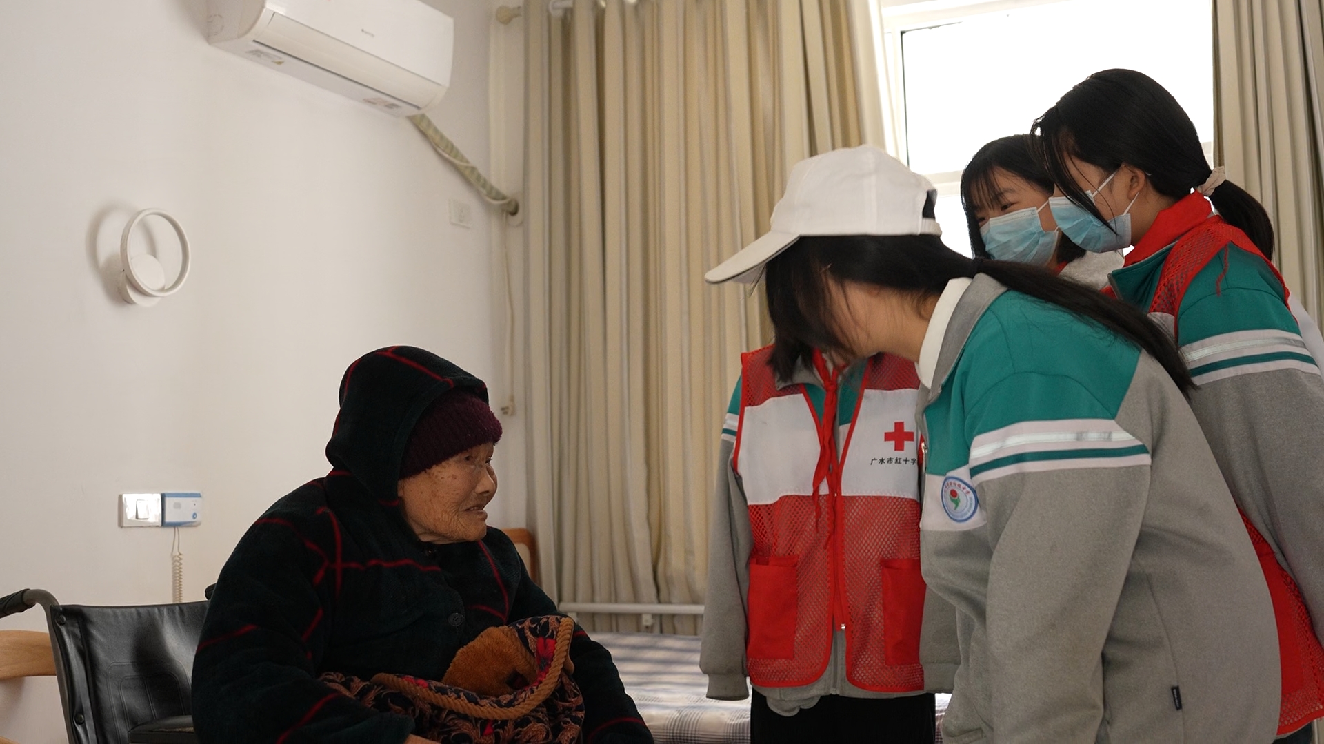 活动中,学生们分成多个小组,分工协作开展志愿服务。有的同学手持扫帚打扫房间,有的帮老人叠被子整理床铺,有的为老人捶背揉肩剪指甲,有的同学围在老人身边聊天,分享学校趣事,用行动传递温暖。