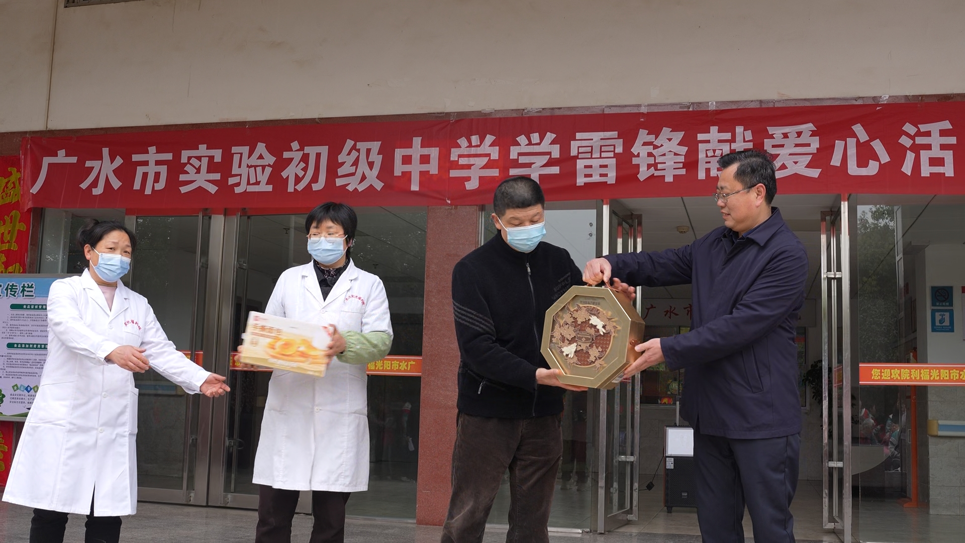 实验初级中学学生:“我们应该发扬并传承雷锋精神,积极参加敬老爱老尊老的活动。”