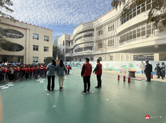 演练过程中,老师们分工明确、看护到位,确保每个孩子安全撤离。整个流程紧张有序,达到了预期效果。参演人员还演练扑灭模拟火源,掌握灭火器的使用方法。