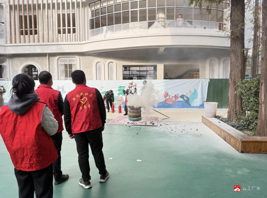 近日,应山街道胜利街社区联合广水市幼儿园,为幼儿园小朋友带来一堂生动的消防安全演练课。