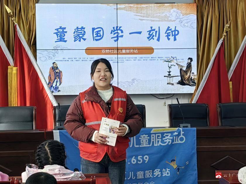 “人之初,性本善,性相近,习相远……”稚嫩而清朗的诵读声,伴随着阵阵欢声笑语,从广水市应山街道双桥社区儿童服务站里悠扬传出。12月14日,广水市关工委、团市委、市未保中心、双桥社区、市义工联等单位联合开展“童声诵经典•养正润童心”为主题的童蒙国学一刻钟国学诵读活动,为孩子们的周末注入深厚的文化滋养与品德熏陶。