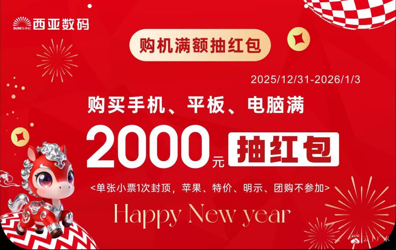 西亚数码元旦购机抽红包 满额福利惊喜上线