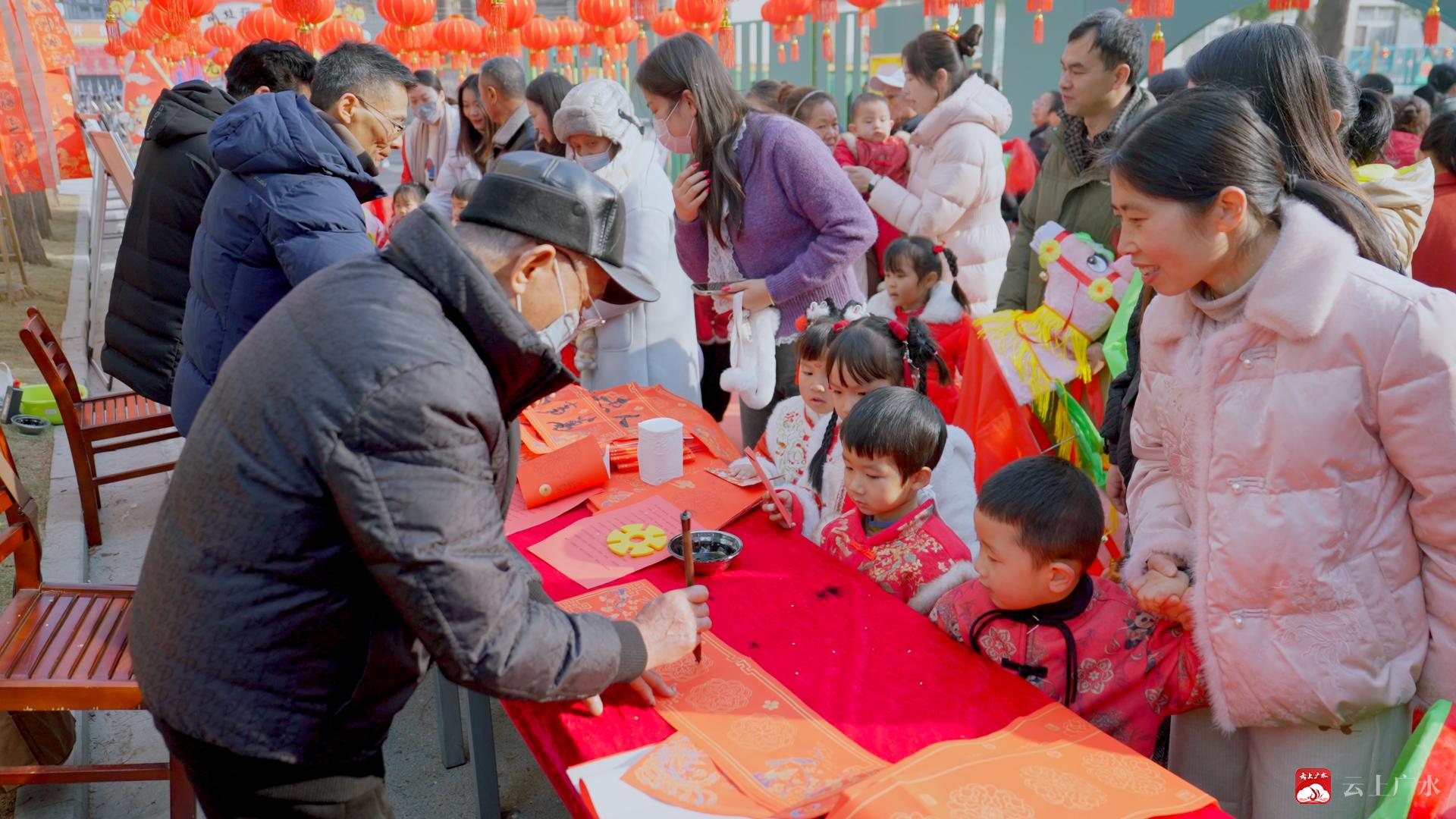庙会与游戏区汇聚了满满的人间烟火与亲子温情。小吃摊位前香气四溢,书法体验区则翰墨飘香。在广水市印台书画院与市书法协会老师的现场指导下,家长与孩子共同提笔挥毫,一幅幅充满童趣的春联和饱满的“福”字在红纸上绽放,将新年祝福凝于笔端。此外,写福字、套蔬菜、做贺卡、放荷灯等十多项游戏同样吸引着大小朋友踊跃参与,现场欢声笑语不断。