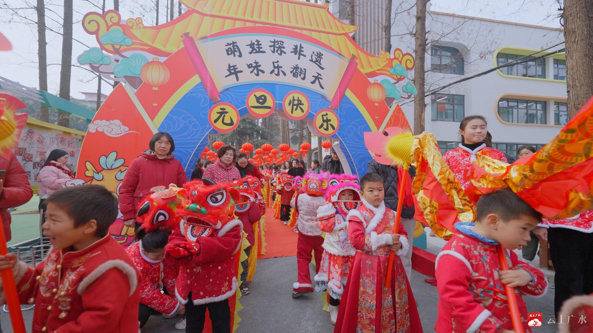 12月30日,广水市幼儿园门口红绸飘舞,锣鼓震天,一串串灯笼映照着童真的笑脸。幼儿园化身一座沉浸式“非遗乐园”,以“萌娃探非遗·年味乐翻天”为主题的元旦文化嘉年华在这里热闹上演。全园师生与家长共同参与,营造了一场别开生面、趣味盎然的文化盛宴。