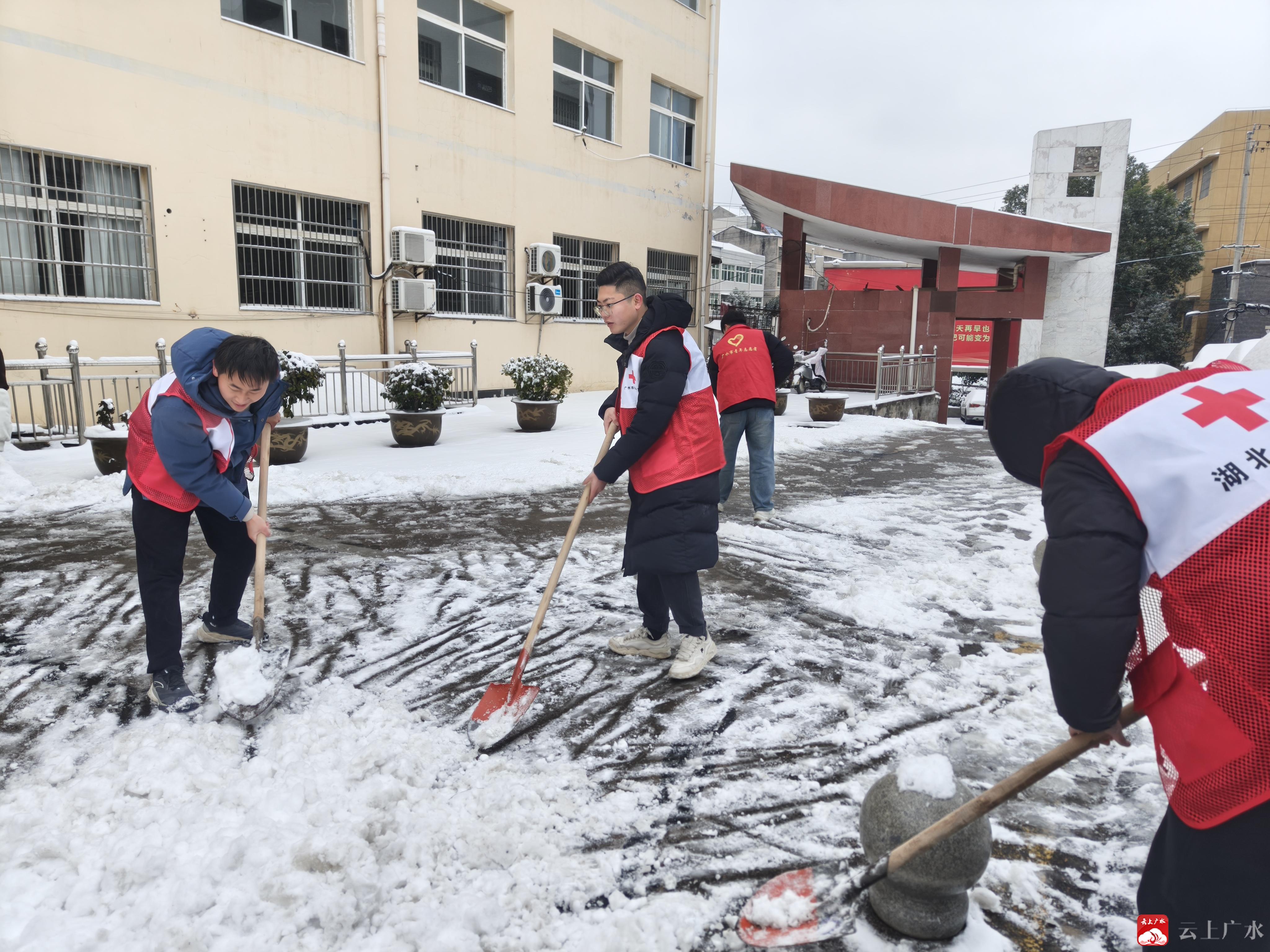 受强冷空气影响,1月19日傍晚至夜间,广水市遭遇大雪天气,余店镇全域普降大雪,1月20日,余店镇气温降至-5℃,伴随持续北风,夜间新增积雪经低温快速冻结,形成薄冰,给群众出行和日常办公带来极大不便。为保障辖区群众出行安全、营造通畅办公环境,余店镇红十字会迅速行动,组织工作人员及志愿者开展专项铲雪除冰活动,以“志愿红”驱散冬日寒,筑牢安全防线。