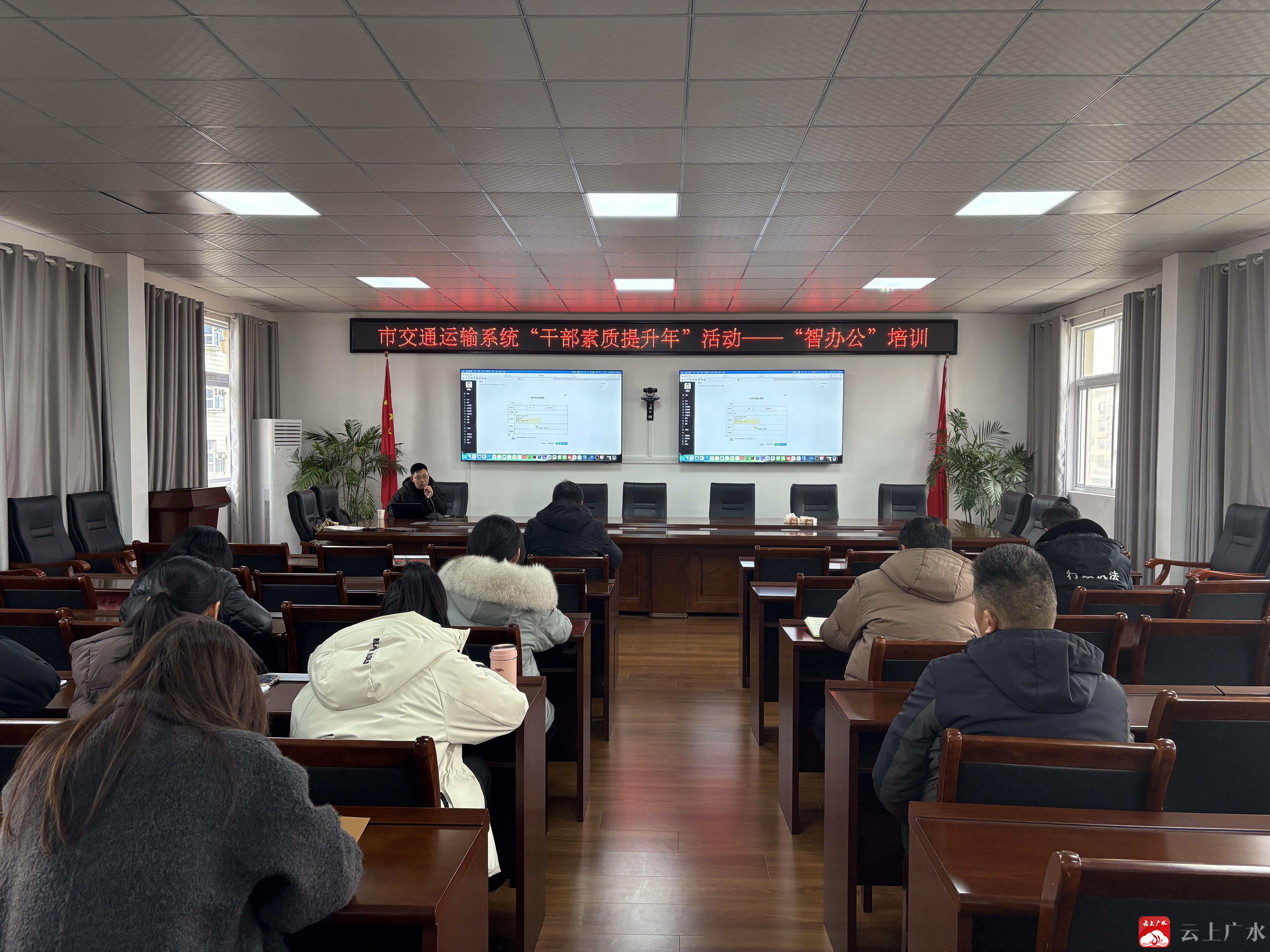 为深入推进“干部素质提升年”活动走深走实,全面提升干部职工信息化办公能力,1月27日下午,市交通运输局在局五楼会议室组织开展“智办公”系统专题培训,切实以技能提升为干部素质提质增效。局机关全体干部职工、局属各二级单位办公室主任参加培训。