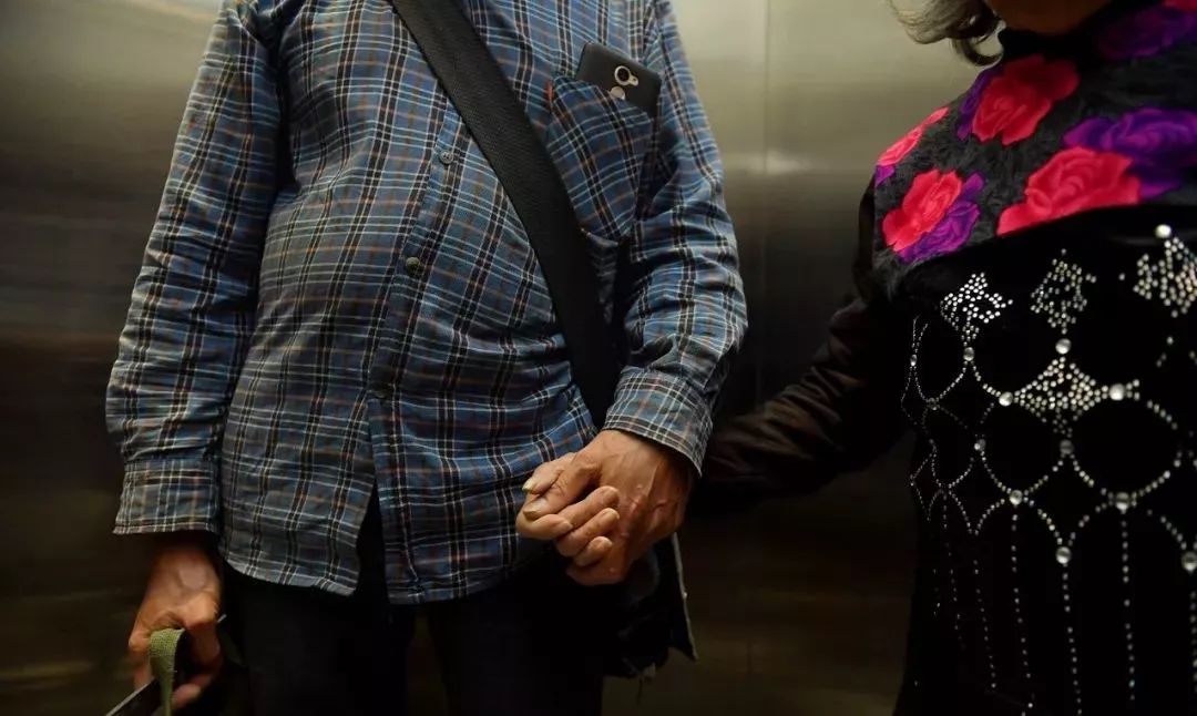 哪怕电梯里也和母亲手拉着手