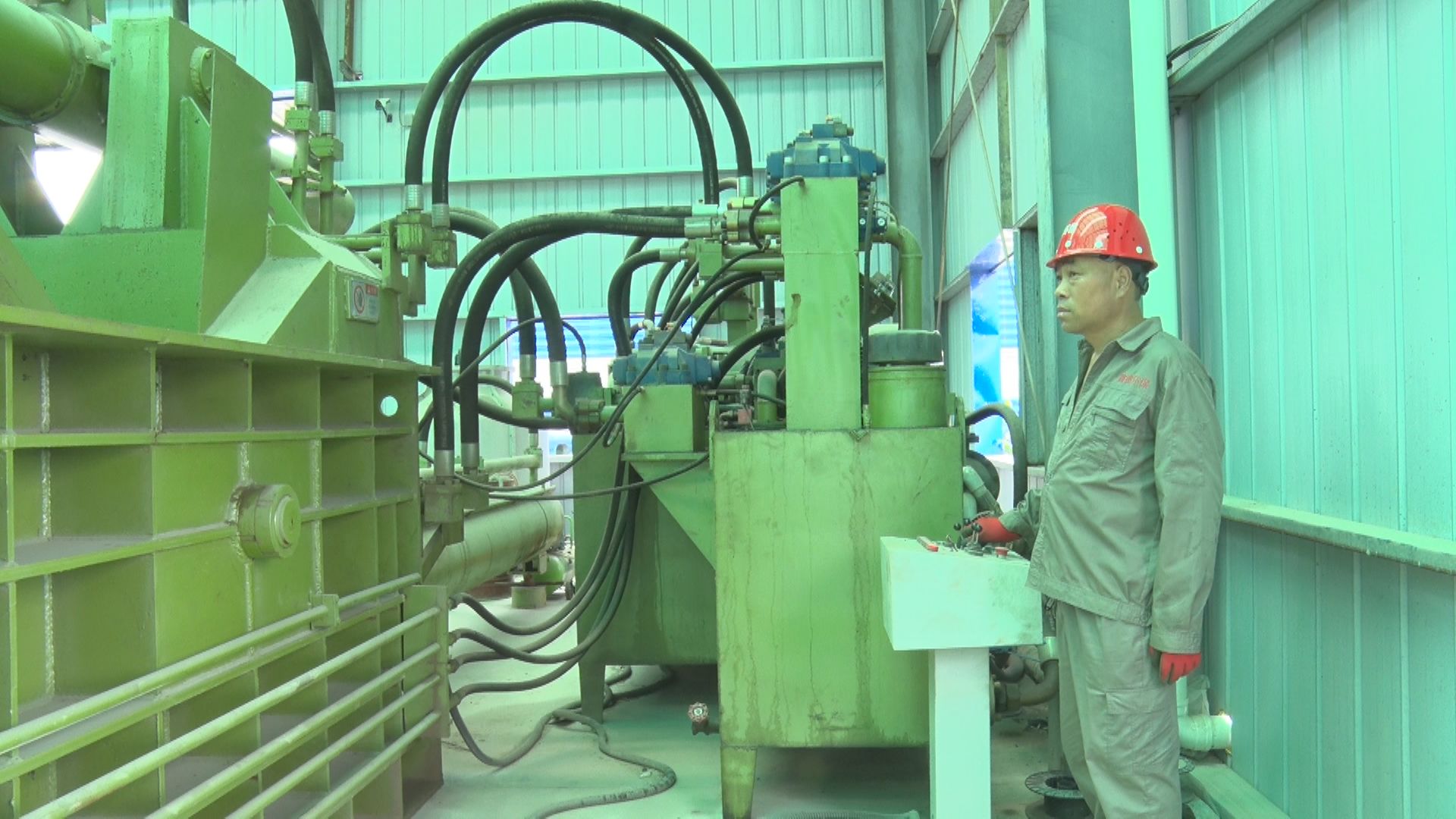 在广水鑫腾环保科技有限公司生产车间,一件件回收来的废钢、废不锈钢金属被有步骤地分拣、破碎、压饼、打包、压块,经过物流配送,送往下游大型钢铁生产企业。