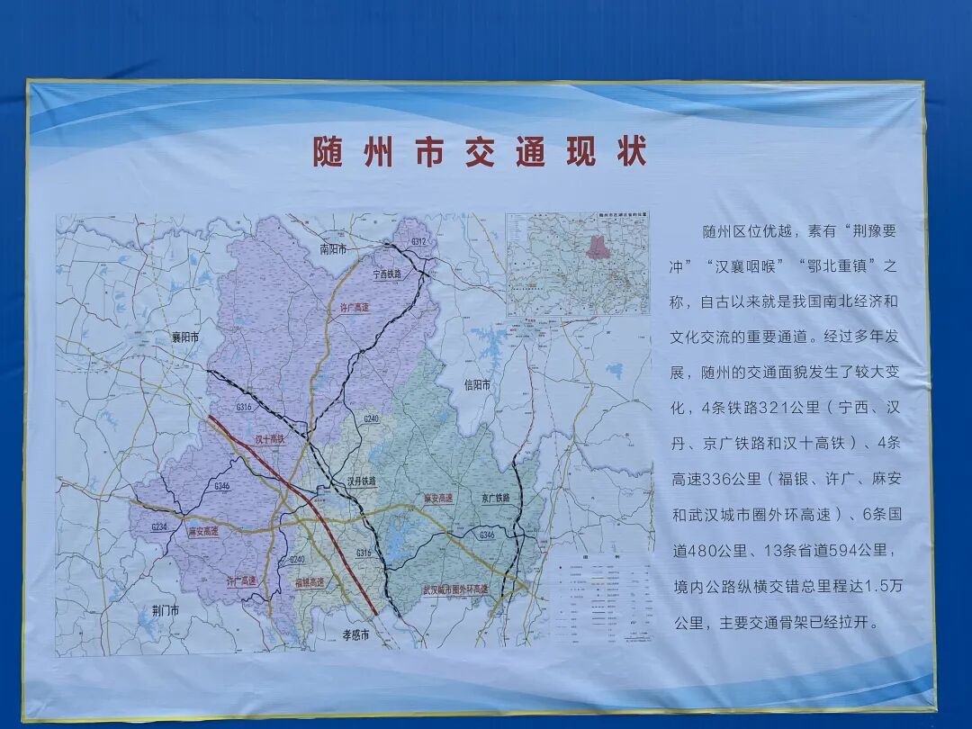 发挥随州作为南北经济和文化交流重要通道的优势,持续推进交通基础设施建设三年大会战,力争三年完成交通固定资产投资超200亿元,实施重点支撑性项目37个,建成“八纵五横三联一环”的干线公路网,形成市区20分钟通勤圈、市域1小时交通圈、城际2小时交通圈。