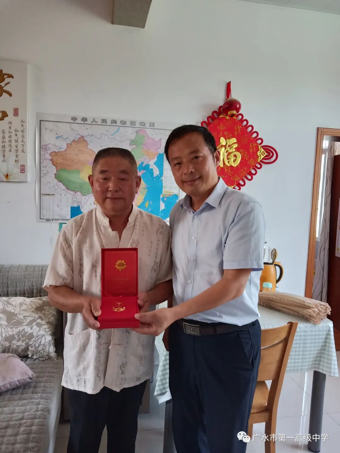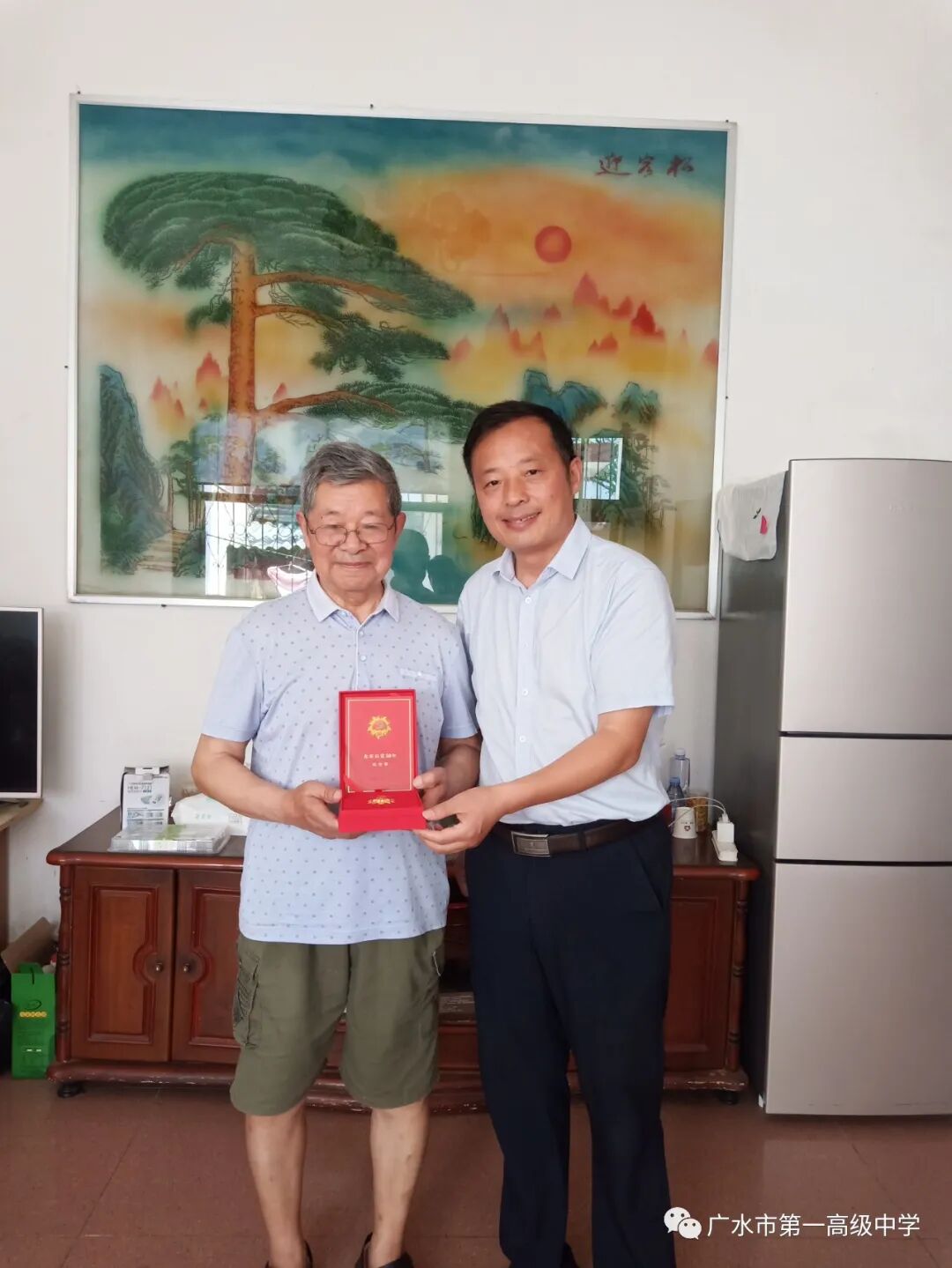 在建党102周年来临之际,为弘扬中国共产党的光荣传统和优良作风,加强党内关怀,传递组织温暖,6月30日,广水一中负责人带队走访慰问老党员,为他们送去党组织的亲切关怀和节日祝福,并为党龄达到50年的老党员颁发“光荣在党50年”纪念章,感谢他们为党奉献、为民服务、为学校教育事业做出的贡献。