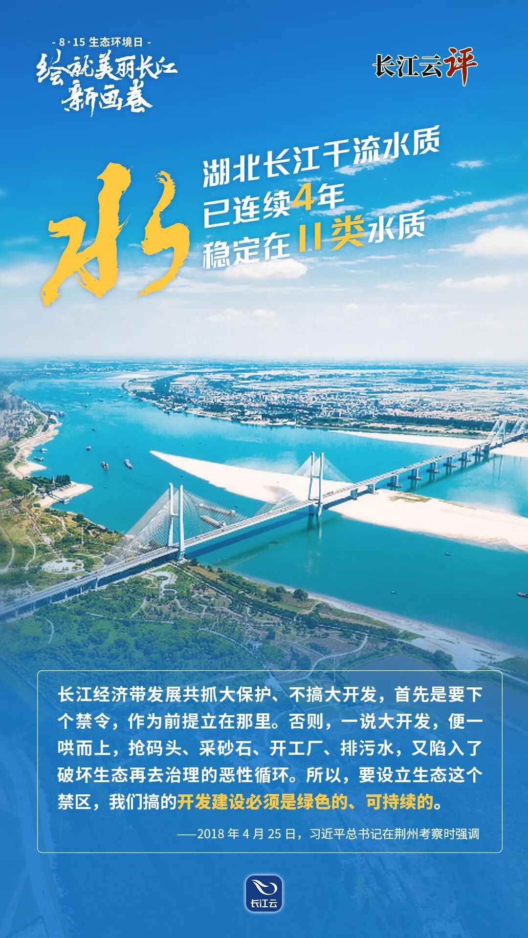 青山行不尽,绿水去何长。“生态环境保护和经济发展不是矛盾对立的关系,而是辩证统一的关系。只有把绿色发展的底色铺好,才会有今后发展的高歌猛进。”以高品质生态环境支撑高质量发展,十载风雨兼程,湖北守牢长江经济带绿色本底,让天更蓝、地更绿、水更清。大江大河大保护,江河焕发生机活力。新征程上,6100万荆楚儿女携手同心、不懈奋斗,让万里长江更加多姿多彩,描绘出长江经济带高质量发展的美丽新画卷。