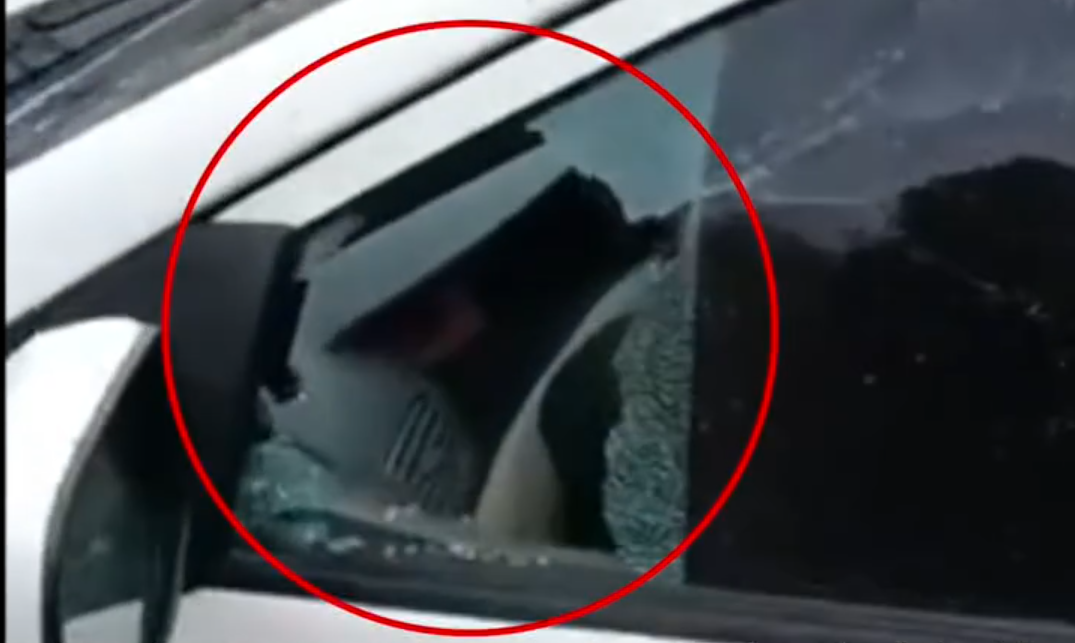 小区内一辆停放的汽车车窗受损