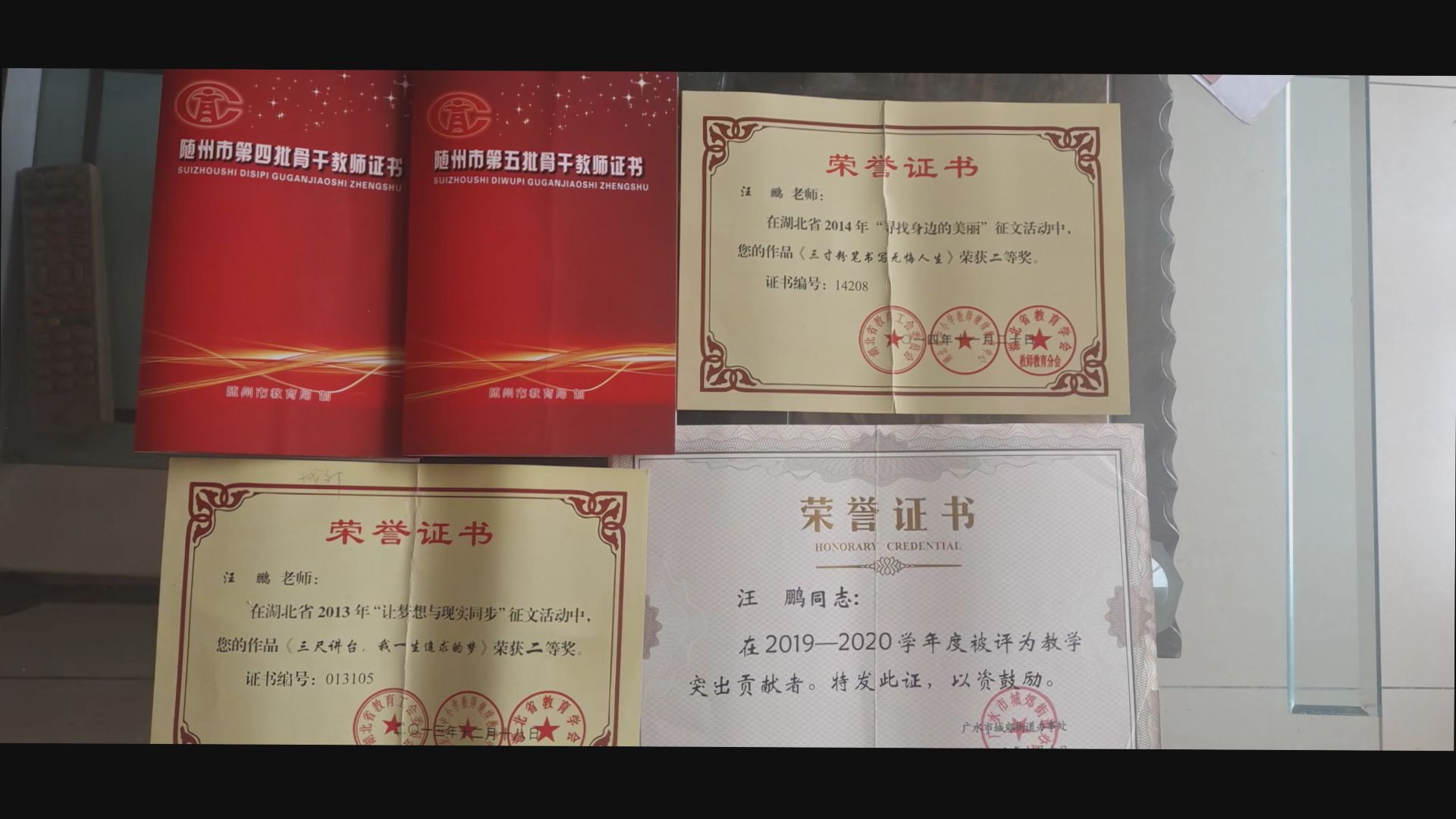 汪鹏坚持把德育工作放在第一位,利用每周班会课对学生进行《中学生守则》《中学生日常行为规范》的学习。因教学成绩突出,他先后被评为广水市“十佳班主任”,广水市“优秀班主任”。
