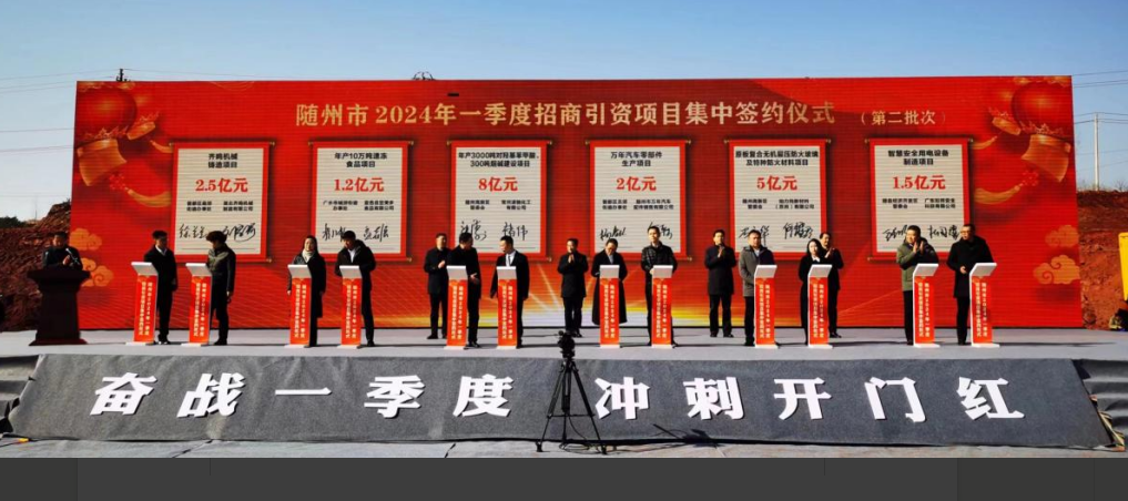 奋战一季度,冲刺开门红。1月25日,2024年一季度随州市重大项目“集中开工、集中签约”活动在广水举行。本次集中开工72个重点项目、集中签约12个招商项目,涵盖先进制造、商贸物流、基础设施、民生改善、生态环保等领域。