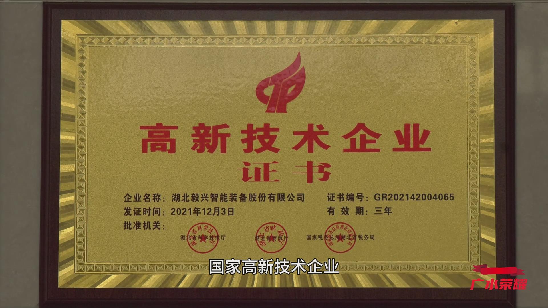 毅兴智能多次获得国家三部委联合颁发的“高新技术企业”称号,体现了公司在科技创新、研发实力方面的优势。2021年公司产品获立嘉国际智能装备展“新产品赤鹰奖”,荣获国家级“专精特新‘小巨人’企业”称号。