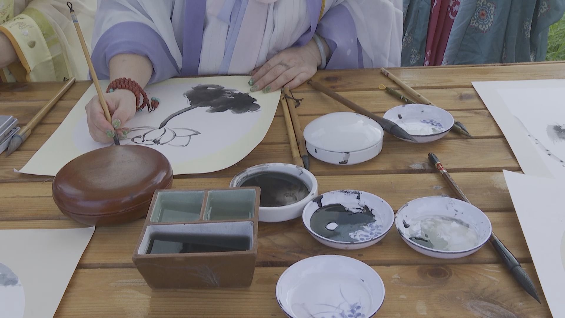 非遗集市设置在“有爱的月光”专场云歌会舞台区右侧,广水多个乡村合作公司的产品整齐地摆在一个个摊位上,非遗技艺、手工艺品、农特产品、传统美食等各类展销品琳琅满目。游客现场参与非遗展示互动,尝试制作非遗拓画扇,免费领取广水书法家现场笔绘红底“福”字、“三乡”文化书刊等。