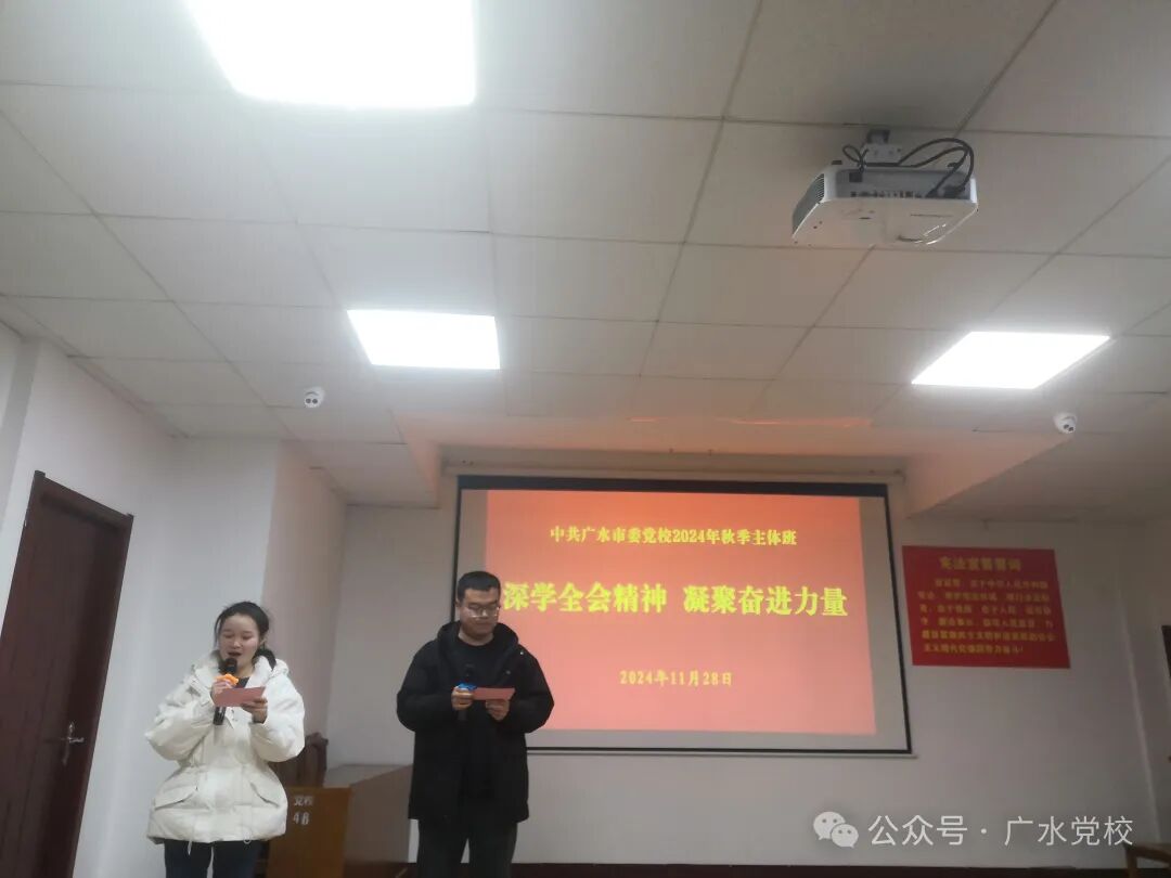 为深入学习领会党的二十届三中全会精神,切实把思想和行动统一到习近平总书记重要讲话精神和全会部署上来,11月28日下午,中共广水市委党校举办2024年秋季学期主体班“深学全会精神 凝聚奋进力量”学习成果展示活动。