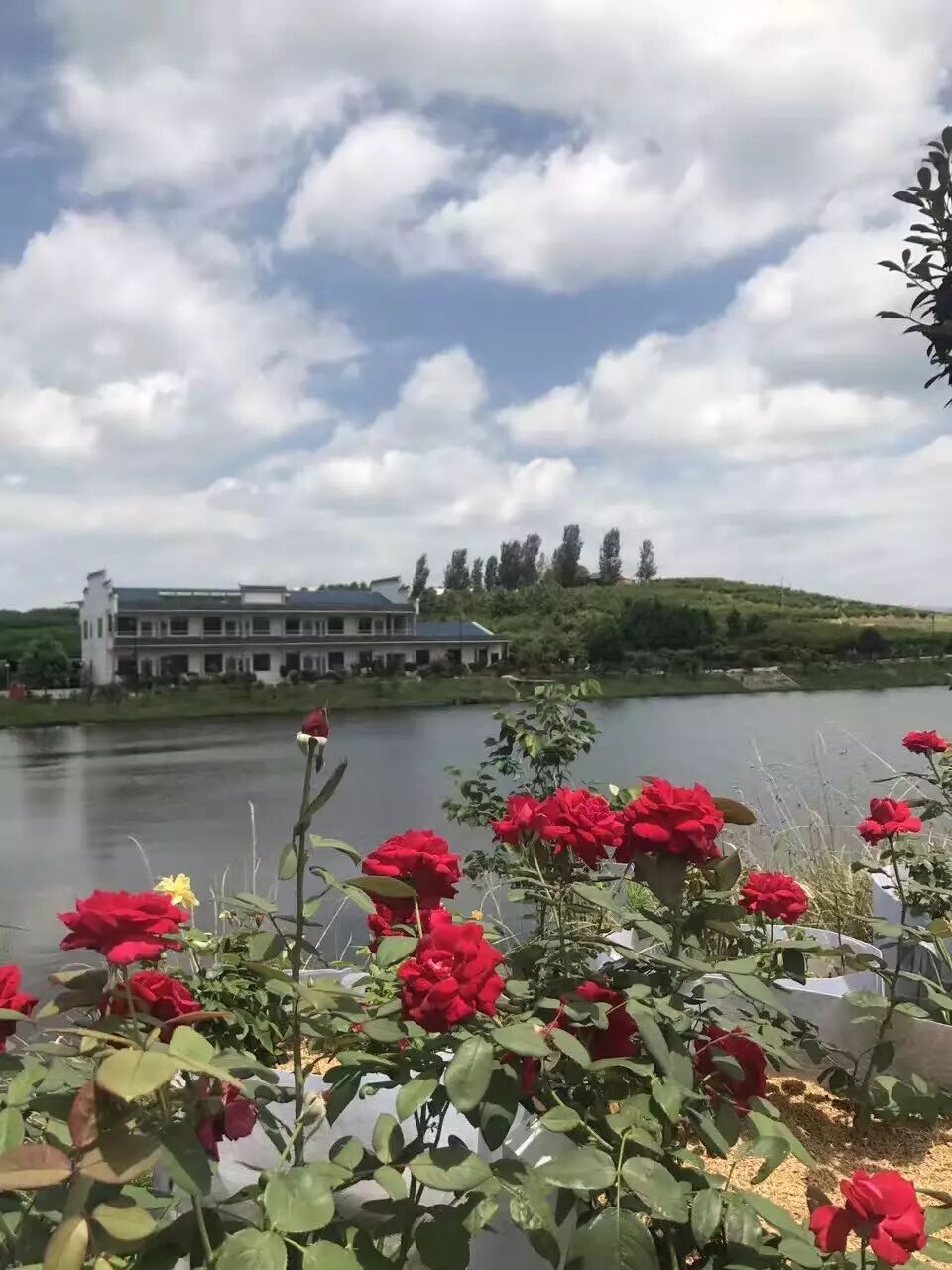 记者在月季园里看到,一片姹紫嫣红,村民从河里淘来的各种山石,形成天然盆景园林,在亲水池塘边,还有月季形成的花海迷宫,游人情侣嬉笑其中。