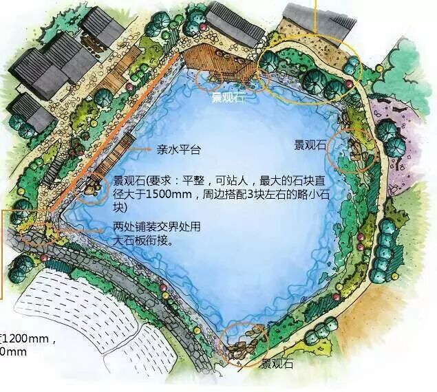 水塘的堤岸、拱桥都用山石堆砌,石头都是村民们从周边河滩上淘来的,'这样做最原生态“。