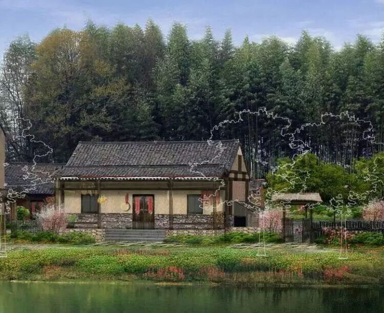 鸟唱松冈,鱼戏荷塘 。小山村,一派安详。