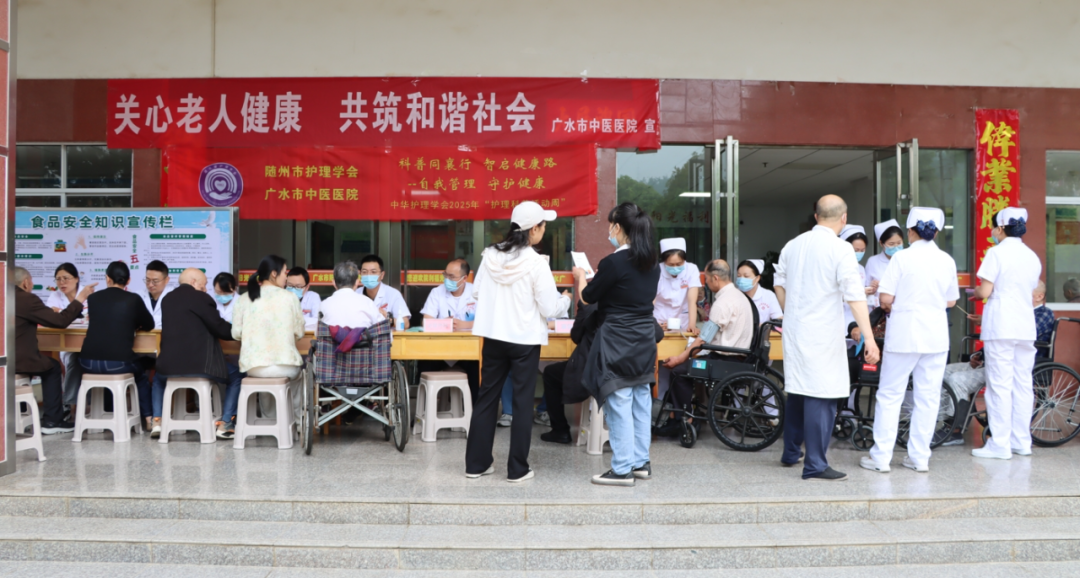 为积极响应中华护理学会 2025 年“护理科普活动”主题要求,深度践行医疗工作者的社会责任与使命担当,5 月 15 日,广水市中医医院精心组织了一场意义非凡的公益活动。护理部牵头,联合糖尿病科、脑病科、心肺科、康复科、泌尿外科、皮肤科、药剂科等多学科专家,近 20 余名专业医护人员走进阳光福利院,开展以“科普同襄行 智启健康路”及“关心老人健康、共筑和谐社会”—— 自我管理守护健康为主题的护理科普与义诊活动,为福利院 80 余名老人送去了专业、全面且贴心的健康服务。