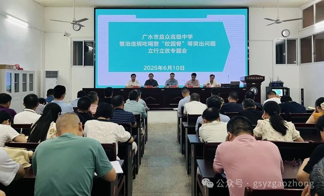 为深入贯彻落实中央八项规定精神,全面响应省、市关于违规吃喝专项整治工作部署,切实解决“校园餐”领域突出问题,6月10日,广水市益众高级中学召开整治违规吃喝暨“校园餐”等突出问题立行立改专题会,全校教职工参加了此次会议。