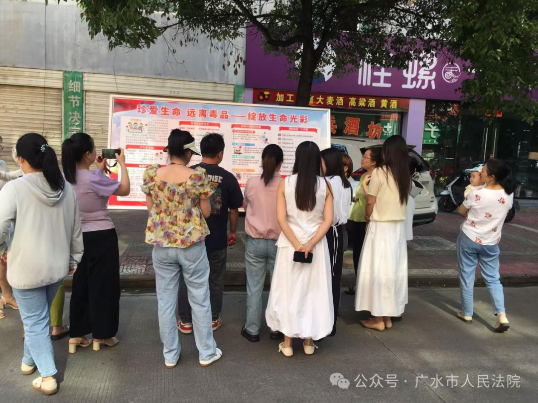在第38个“国际禁毒日”来临之际,为增强社会群众的识毒、防毒、拒毒意识和能力,提高社会对毒品危害性的认识,营造全民参与禁毒的良好氛围,6月24日上午,广水市人民法院到应山街道办事处北关社区开展禁毒宣传活动。