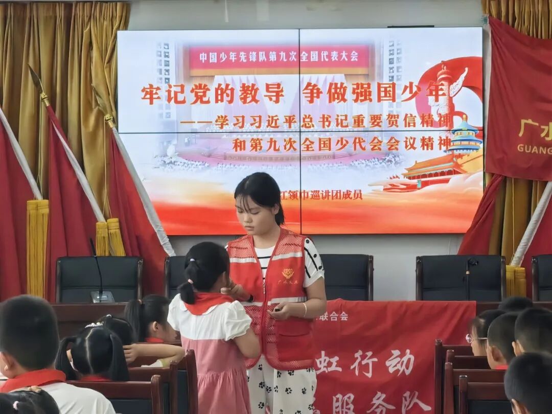近日,广水市青年宣讲团、红领巾巡讲团成员,校外辅导员、红领巾讲解员共同组成宣讲小队,面向各“暑假学堂”爱心托管班点位开展“红领巾课堂”专项活动,点亮队员们暑期成长之路。