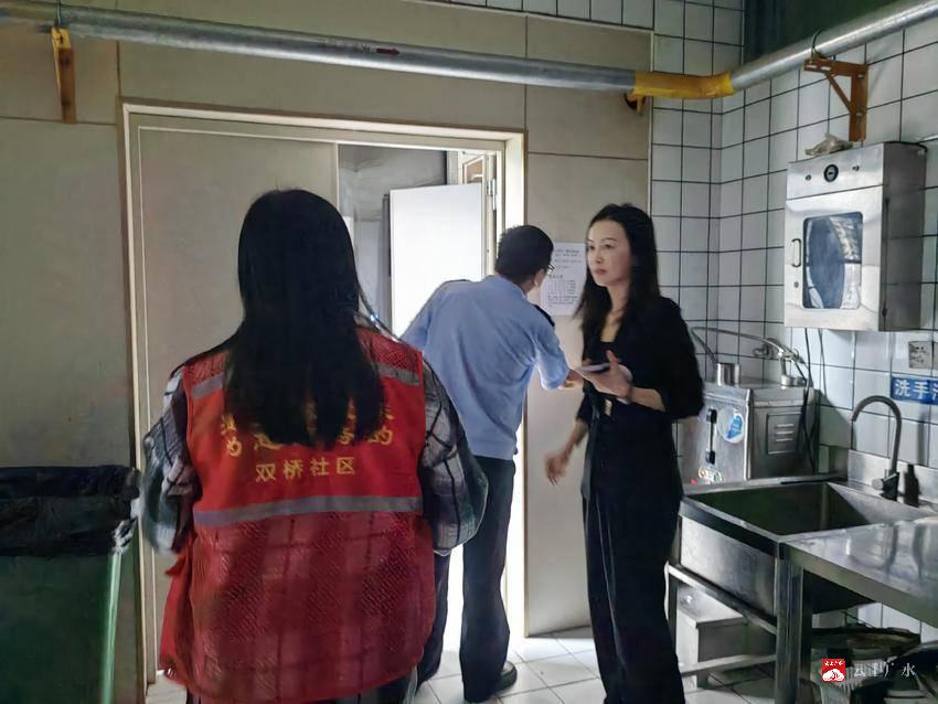 在食品安全检查中,双桥社区工作人员联合网格员深入辖区超市、餐饮店等场所,重点核查食品进货台账、生产日期与保质期,仔细查看冷藏冷冻食品储存温度是否达标,同时检查从业人员健康证、食品经营许可证是否齐全有效。对发现的2家餐饮店存在临期食品未及时处理问题,工作人员当场提出整改要求,督促经营者落实食品安全主体责任,坚决杜绝“三无”食品流入市场,守护居民“舌尖上的安全”。