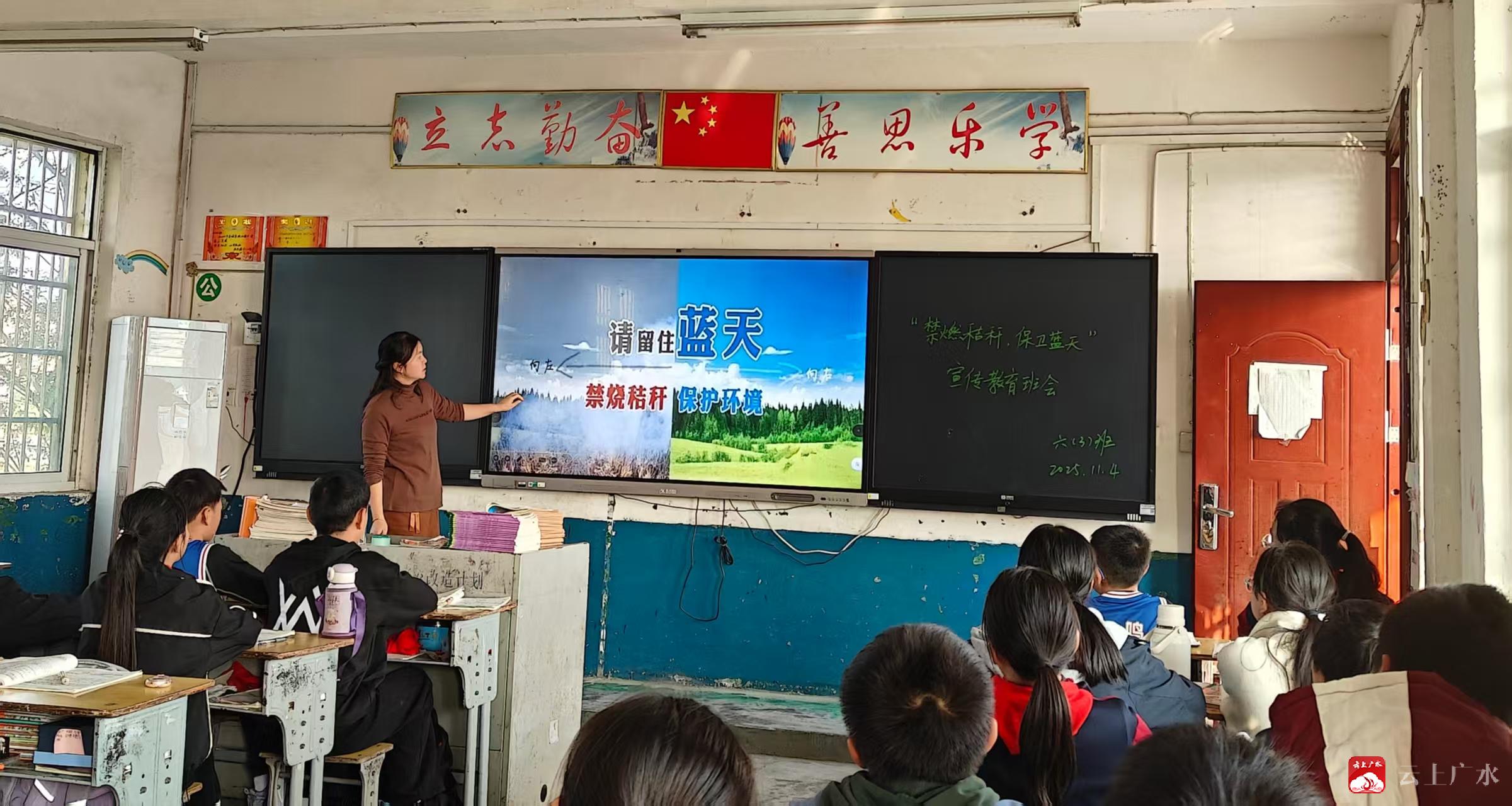 为深入贯彻落实生态文明建设要求,切实加强青少年环保教育,增强全体师生的环保意识,11月4日,骆店镇中心小学精心组织各班级开展了“禁燃秸秆 保卫蓝天”宣传教育主题班会,全面提升师生生态文明素养,在校内营造“保护环境 人人有责”的浓厚氛围。