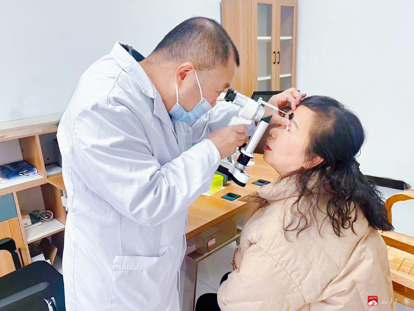 在专家工作室内,左继东团队为前来就诊的群众进行眼部检查与诊断,尤其针对农村多发的眼部化学伤、结膜炎等疾病给予细致诊治和健康指导。同时,团队通过现场演示与手把手教学,指导卫生院医护人员掌握泪道冲洗、结膜囊冲洗等基础而关键的操作技能。这些技术是急性眼外伤处置的重要一环,能有效争取救治时间,防止病情进一步恶化。