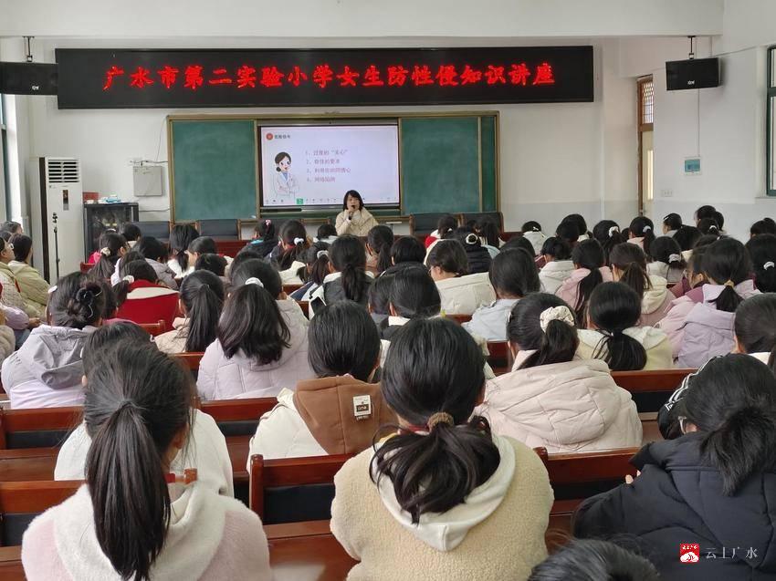 为进一步加强校园安全教育,提升高年级女生自我保护意识和防范能力,筑牢校园安全防线,近日,广水市第二实验小学开展了高年级女生防性侵知识讲座。