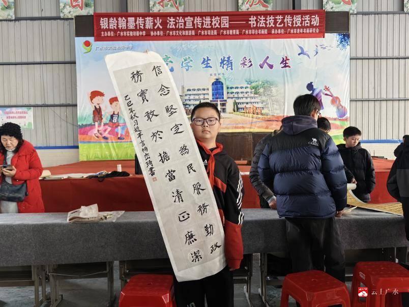 “银龄”传承法治温度,“青春”注入普法活力。12月19日,广水市关工委、市教育局关工委凝聚银龄“五老”力量,走进市实验中学开展“银龄墨翰传薪火•法治宣传进校园”主题活动,将法治精神与文化传承深度融合,为青少年们送上了一场兼具艺术熏陶与法治教育的文化盛宴。