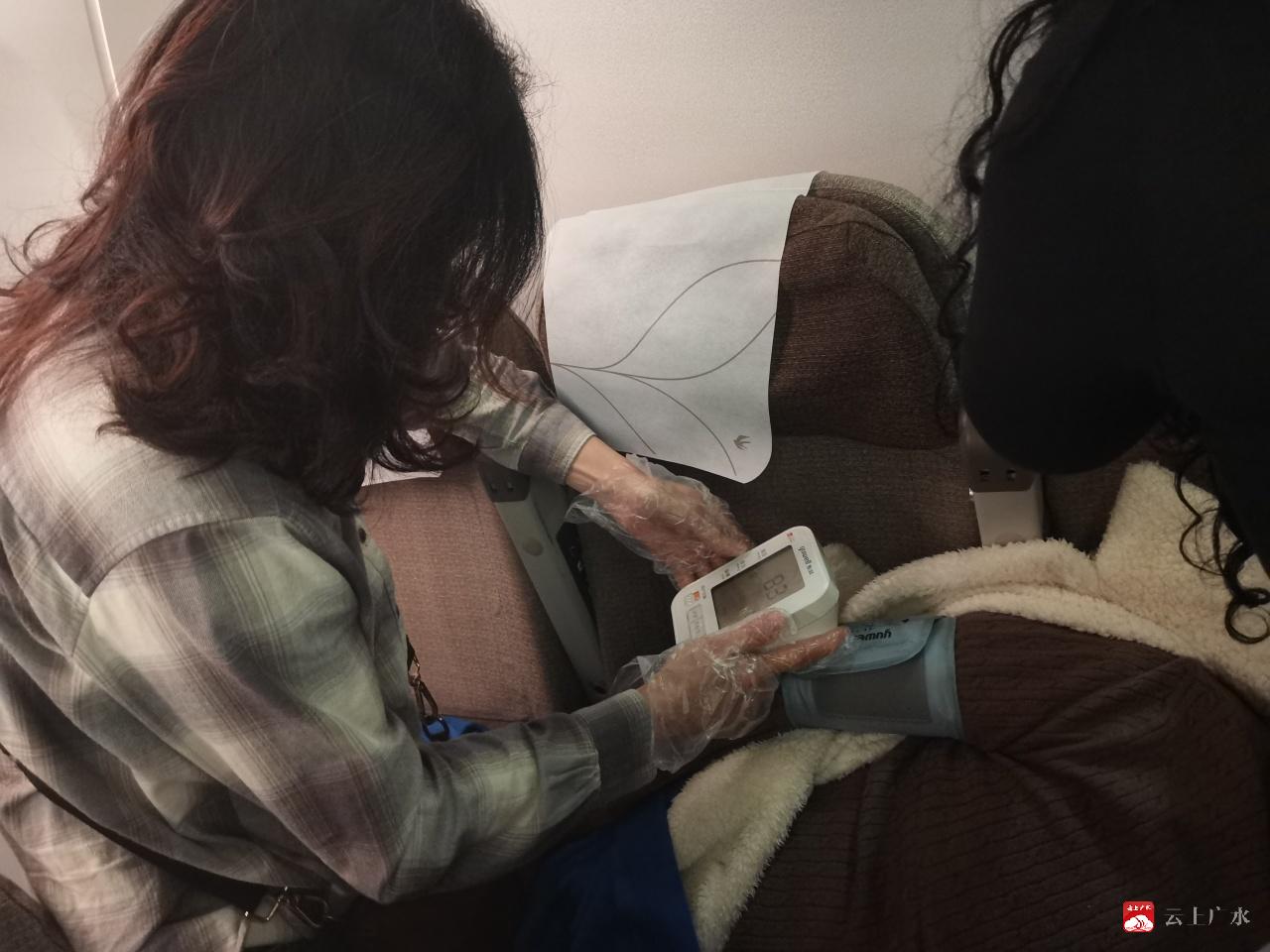(张小华为患者测量血压)