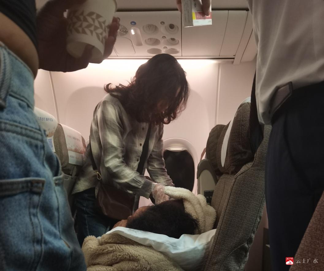 在整个近一小时的救助过程中,张小华不仅专注于患者的身体状况,还主动与航班乘务长、乘务员以及患者的女儿保持沟通,解释病情,给予家属安慰,并交代了后续观察的注意事项。在她专业、细致的照护下,患者的症状逐渐缓解,病情趋于稳定。直到确认老人已无大碍,张小华夫妇才安心返回自己的座位。