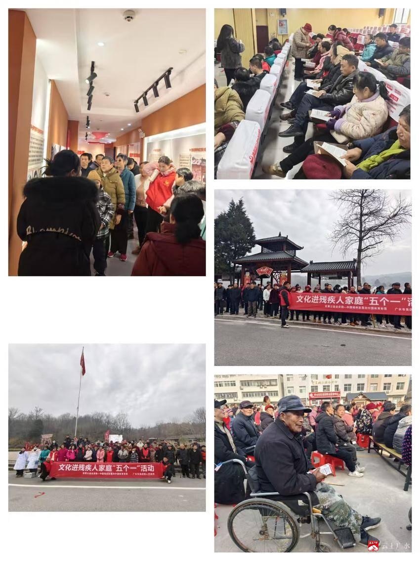 寒冬辞旧岁,暖意迎新年。在元旦佳节即将到来之际,12月30日,广水市残疾人联合会联合吴店镇人民政府,在镇文化活动中心温情举办文化进残疾人家庭“五个一”迎新联欢活动,近百名残疾人朋友与残疾人工作者、志愿者欢聚一堂,共叙温情、共迎元旦,让平等融合的社会暖流浸润人心。