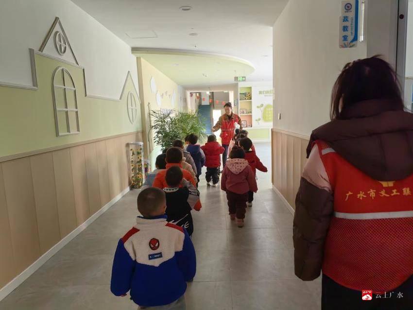 元月9日,广水市关工委、市教育局、市义工联联合在市永阳幼儿园开展“以‘骗’筑防•为‘幼’护航”防拐防骗宣教系列活动,提升幼儿防拐骗安全意识和在陌生环境下的自护能力,为幼儿安全成长再加一道“防护锁”、“护童墙”。