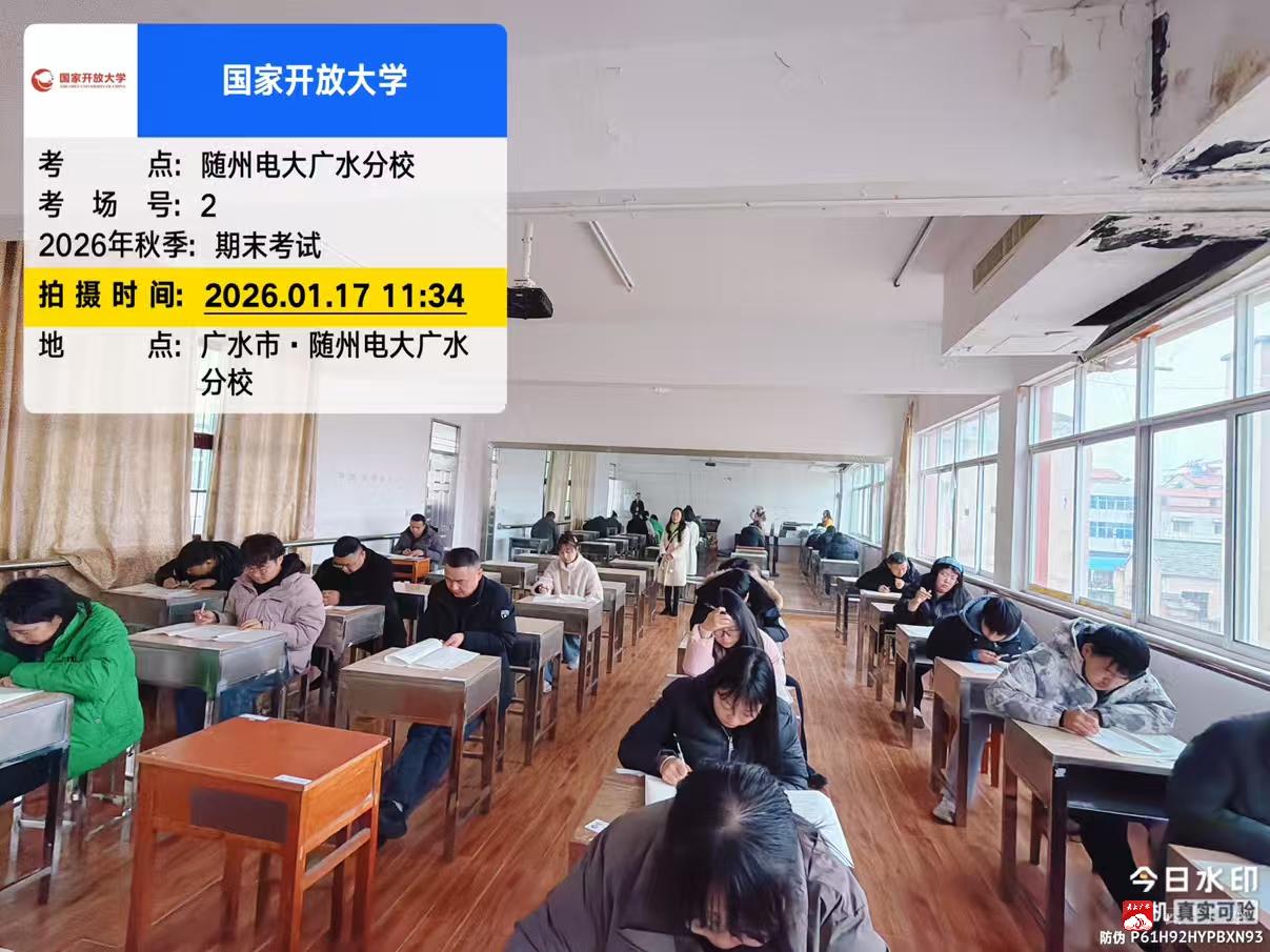 近日,广水市广播电视大学2025年秋季学期期末考试在我校顺利举行。本次考试分为两个阶段进行,其中14日、15日为机考,17日、18日为笔试,考试全程组织严密、秩序良好,各项工作圆满完成。
