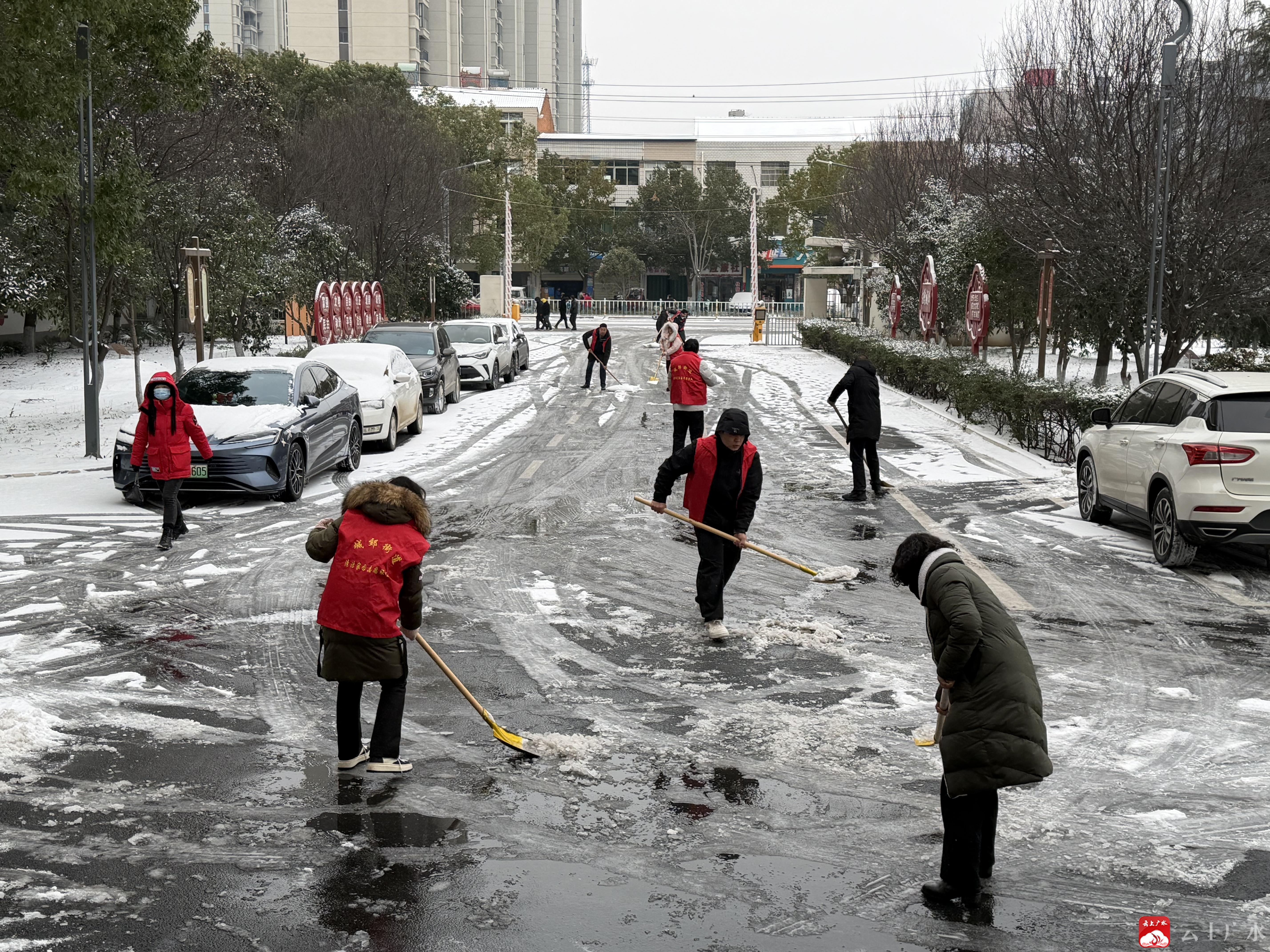 活动发起后,志愿者们积极响应号召,大家身着统一的志愿红马甲,带着铁锹、扫帚、融雪剂等工具,奔赴辖区主干道、小区出入口、学校周边、公交站点等重点区域。尽管寒风凛冽、雨雪纷飞,志愿者们的热情却丝毫未减。他们分工明确、配合默契,有的挥动铁锹奋力铲除路面积雪,有的撒布融雪剂加速冰层融化,有的耐心引导过往行人和车辆注意安全。