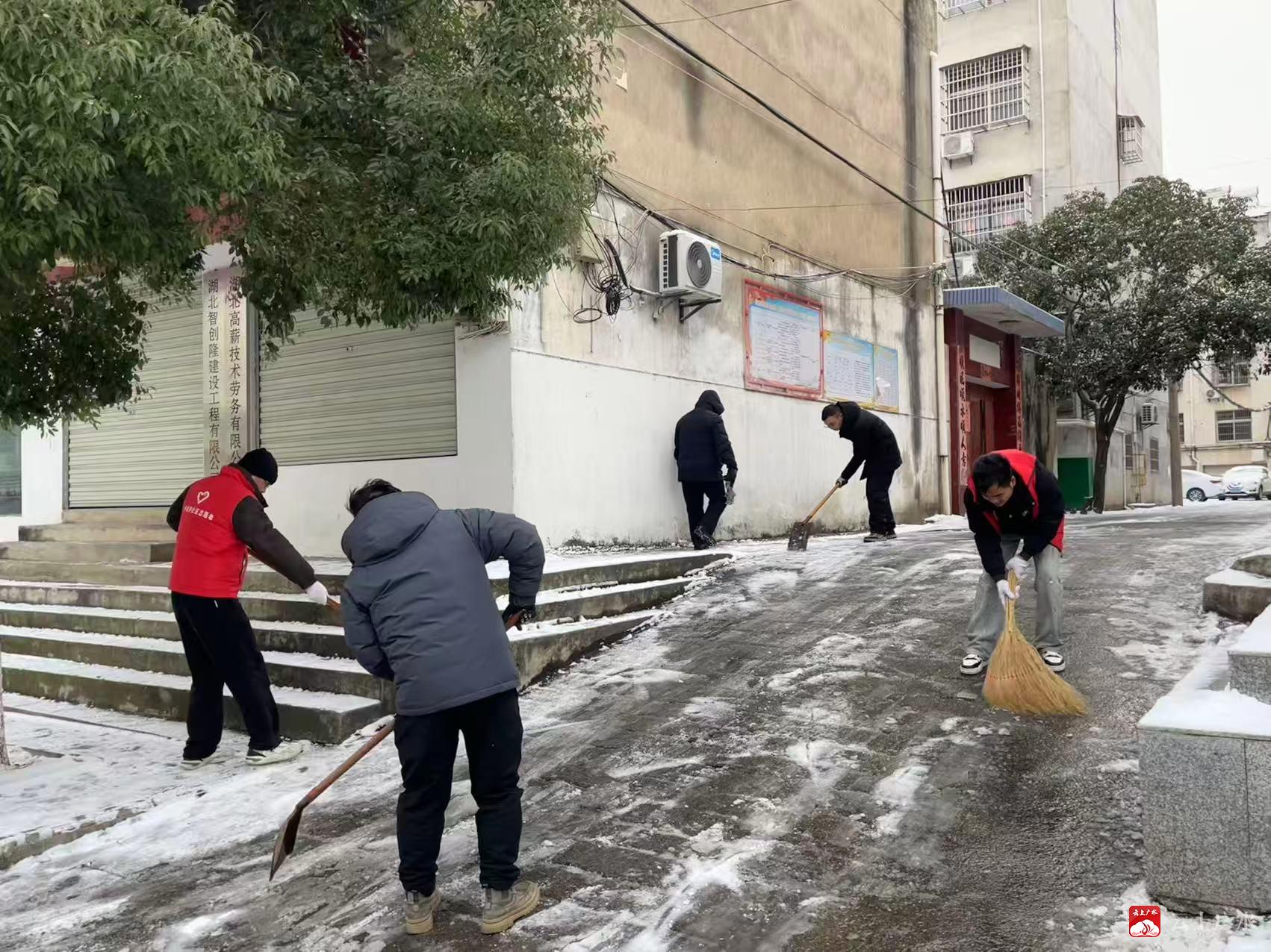 1月20日,应山街道许家井社区组织志愿者开展清雪志愿服务活动,用实际行动保障居民出行安全。