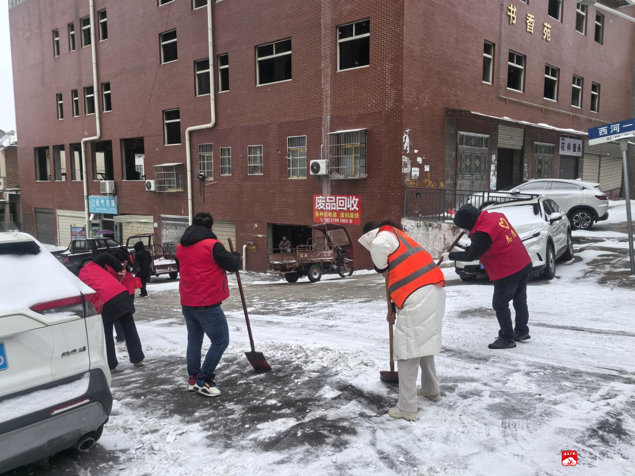 风雪之中,一抹抹“志愿红”格外醒目。工作人员和志愿者们手持铁锹、扫帚,奋力清除主干道、小区出入口、陡坡急弯处的积雪暗冰,为居民开辟出一条条“平安路”。同时,另一支暖心小队正穿行于街巷之中,他们重点走访了辖区的独居老人、困难家庭。工作人员不仅送上了保暖物资,更仔细检查了老人家中用电用气安全,帮助清扫院落积雪,叮嘱他们注意防寒保暖、减少外出。