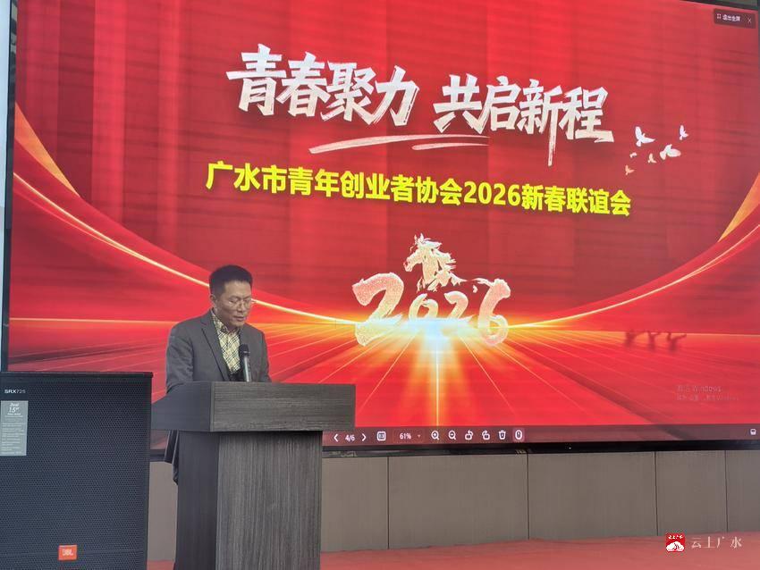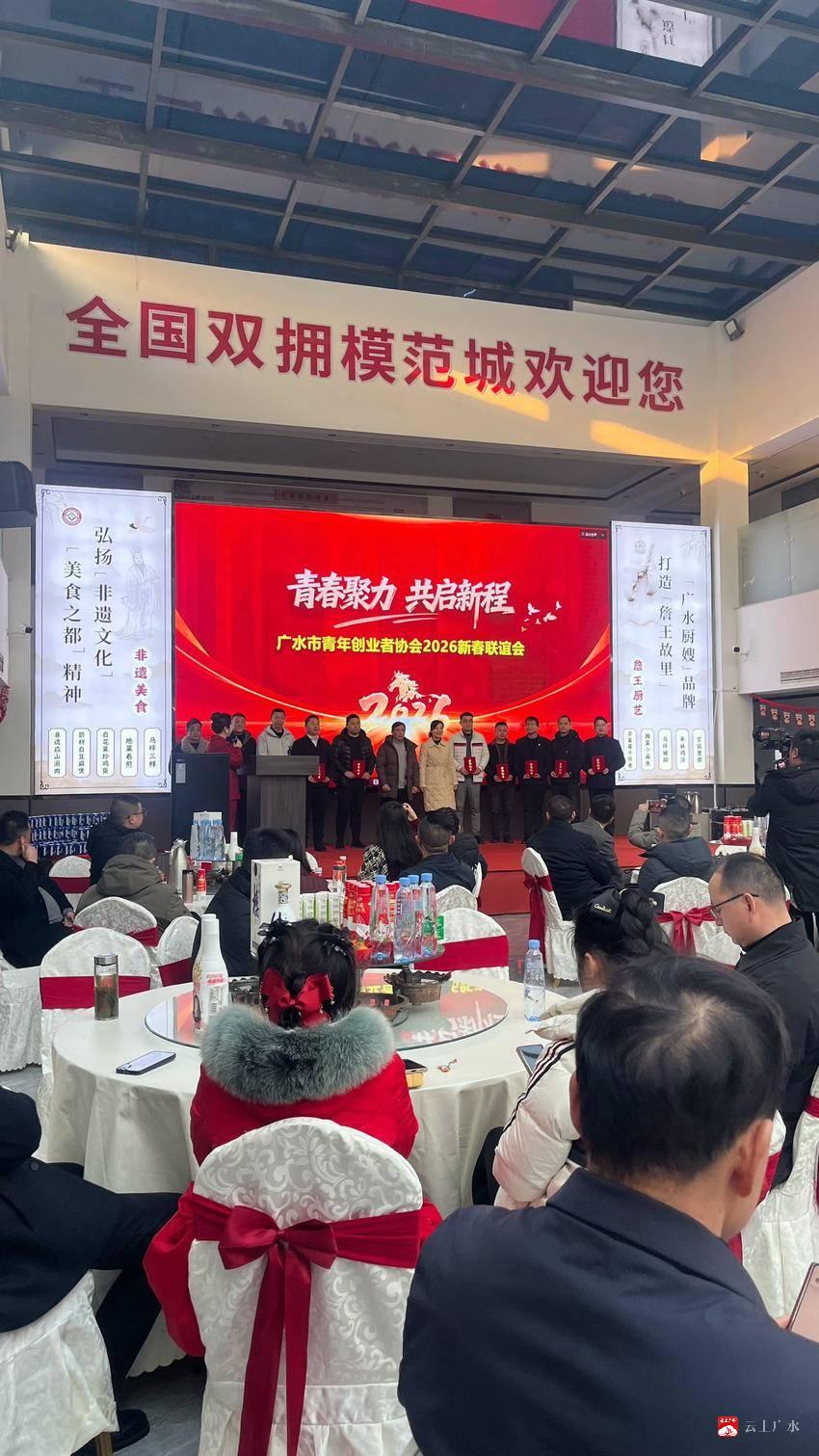 1月23日,广水市青年创业者协会2026年“青春聚力.共启新程”新春联谊会在蔡河镇田园餐厅酒店圆满举办。广水市工商联受邀出席活动,与青创会会员、友好商协会代表共贺新春、共话发展。