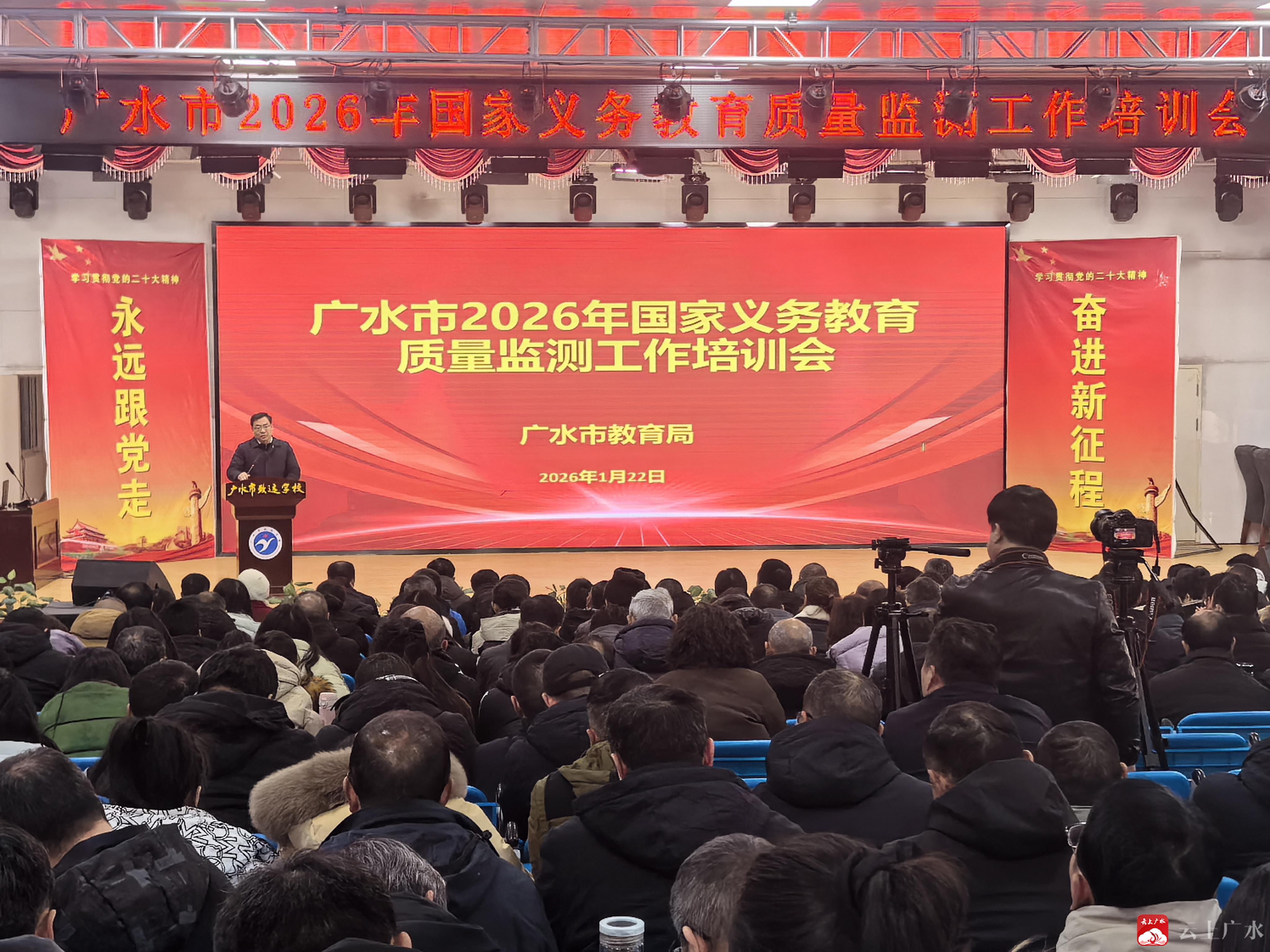 为全面落实国家义务教育质量监测相关工作要求,加速推进广水市义务教育优质均衡发展创建工作提质增效,2026年1月22日上午,广水市2026年国家义务教育质量监测工作培训会在市致远学校隆重召开。