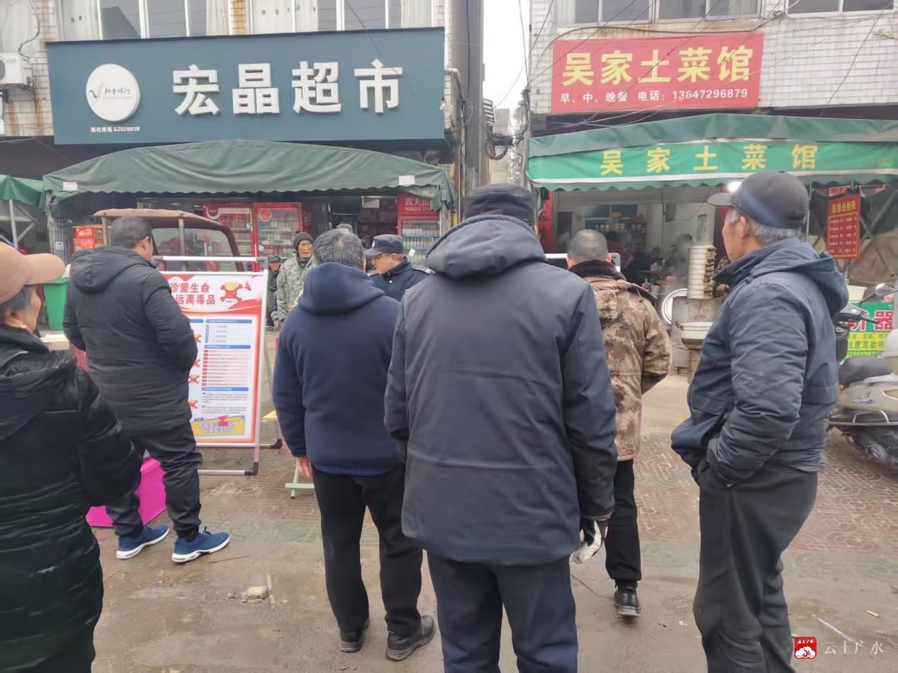 2026年1月25日,农历腊月初七,在关庙镇关庙街社区集镇街道的一个热闹小超市门前,一场由关庙镇平安办和关庙派出所联合主办的禁毒宣传活动正在如火如荼地进行。